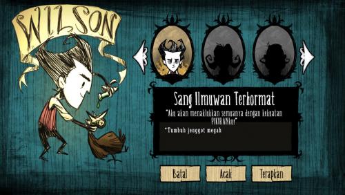 Indonesian Language Pack is a language pack for Don't Starve game to view menus, dialog boxes, and other player interface items in Indonesian.
