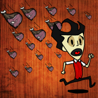 It's from when I was first designing the code to make meat fall from the sky. I thought it was funny so I screenshot it. It's not meant to accurately represent how the current version functions. You would have to stand in the same spot while it's raining for a whole day before your screen would fill up with that much food.