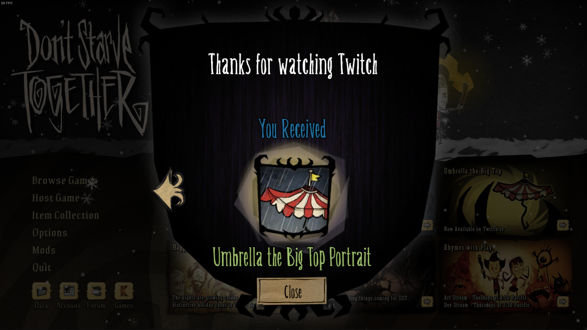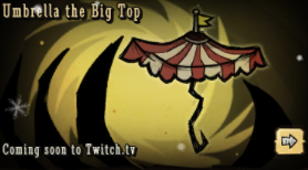 lixinxin Posted December 8, 2018 Share Posted December 8, 2018 I realy love the twitch drops but i sadly missed one and i am sad about it. klei is there any hope for me to get it? Link to comment https://forums.kleientertainment.com/forums/topic/100083-the-umbrella-the-big-top-set-is-now-on-twitchtv/page/2/#findComment-1129008 Share on other sites More sharing options...