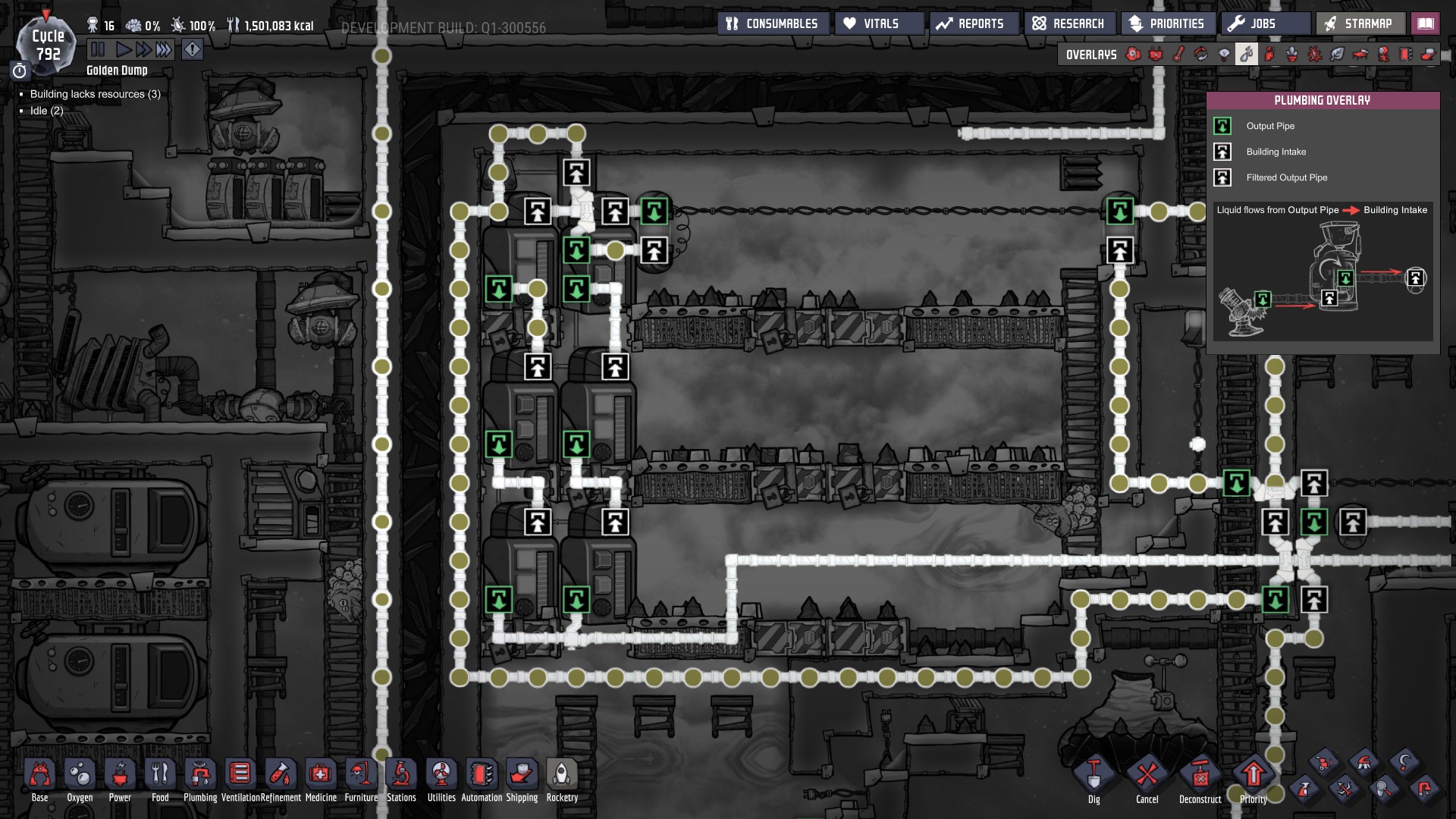 ONIfreak Posted December 27, 2018 Share Posted December 27, 2018 Hi, So i started new planet. I have been blessed (or cursed i don't know anymore) with so much water on it that i'm running out of ideas what to do with it. Also i left some pool with germy water aside - after 200 cycles when i checked this pool became, well, enormous. ( I setup some way to clean it from germs (and do not change it to clean water - just leave it as is). There are few systems together implemented as after every single one there was tiny bit of water with germs passing through. Finally i manage to implement half of cleaning system (btw @Neotuck thank you soo much for your septic system thread. it just made my day, and thank you guys for dropping ideas there it helped a lot to finally get polluted germy free water). I know i know it is very messy there lol So what happen there is that water goes to 3 containers on left and then to 2 germy sensors (one is not enough and let germs pass through) if there are germy on any sensor - water goes to those multiple containers and fly through there and some back to sensors. at the end water is dropped to pool (for me to check manually if water has germs - this will be removed at some point) and when reach certain lvl open door for some time to let it go. Now my question is - does anyone have any idea how to clean this germy water faster then this system - i literally race this geyser and i'm like 0.5 kg on plus - which, looking at quantity, will take me another year or something. If anyone has any idea how to achieve this apart of cooking it (it is nice 8 degree C approximately - don't want to waste so nice cool water) please share it. Link to comment https://forums.kleientertainment.com/forums/topic/101162-how-to-clean-water-from-germs-in-large-quantities-any-idea/ Share on other sites More sharing options...
