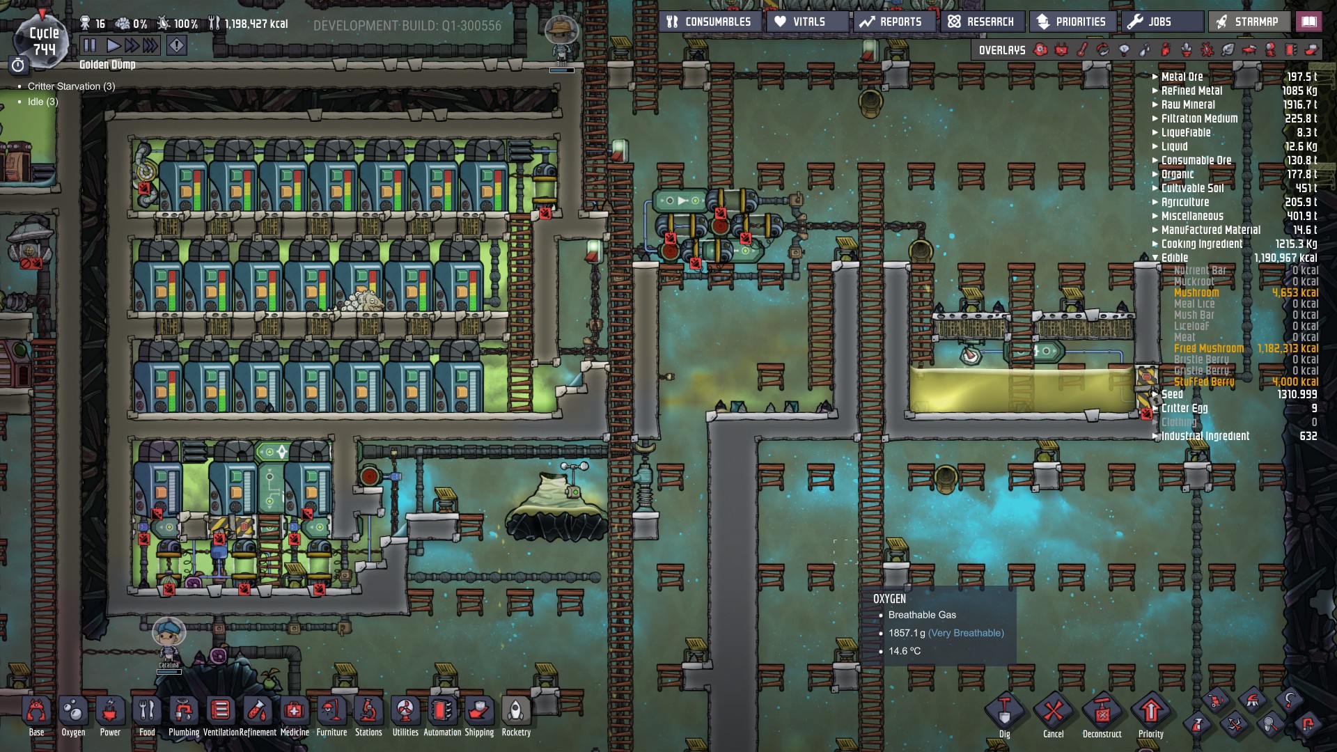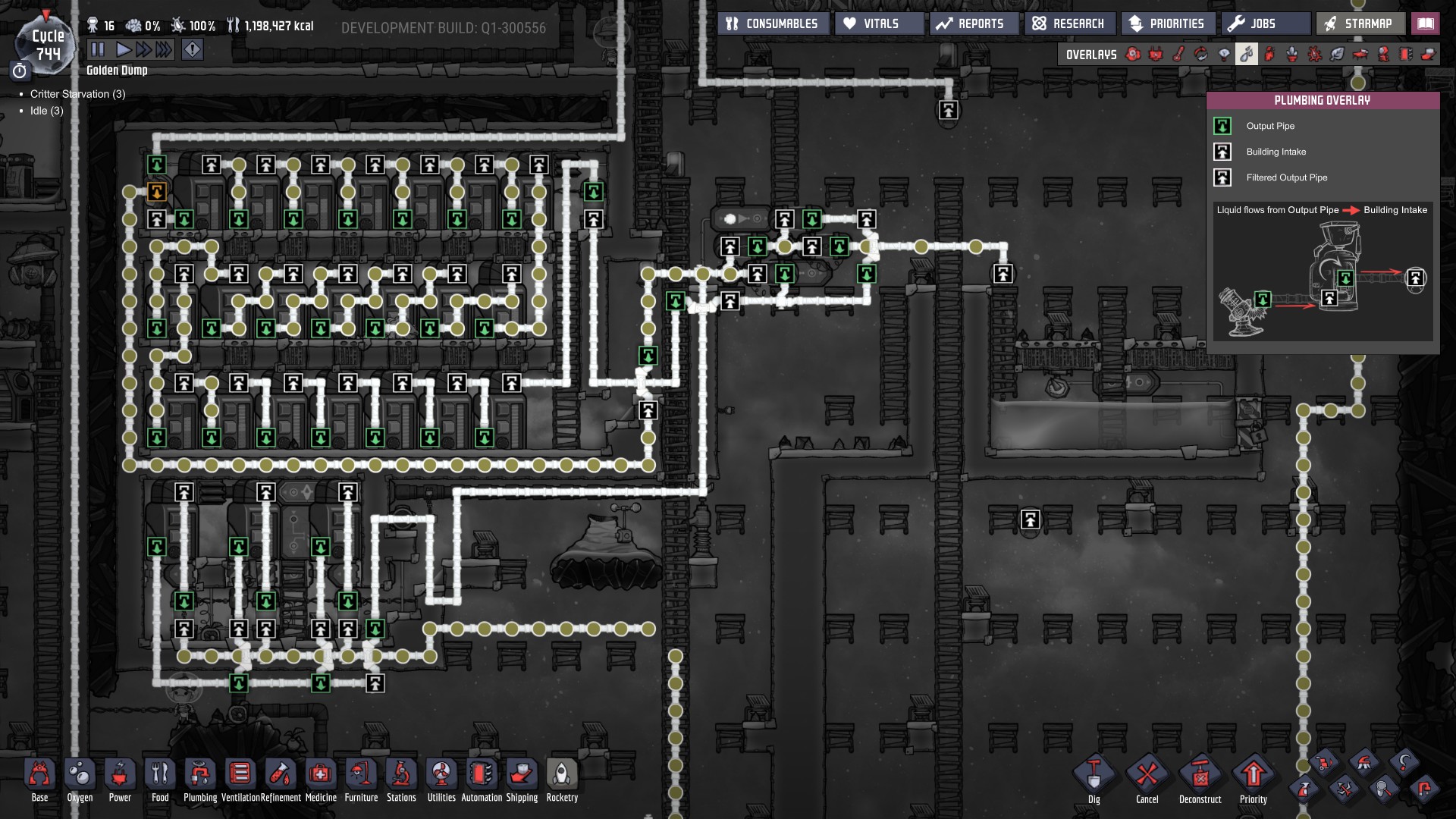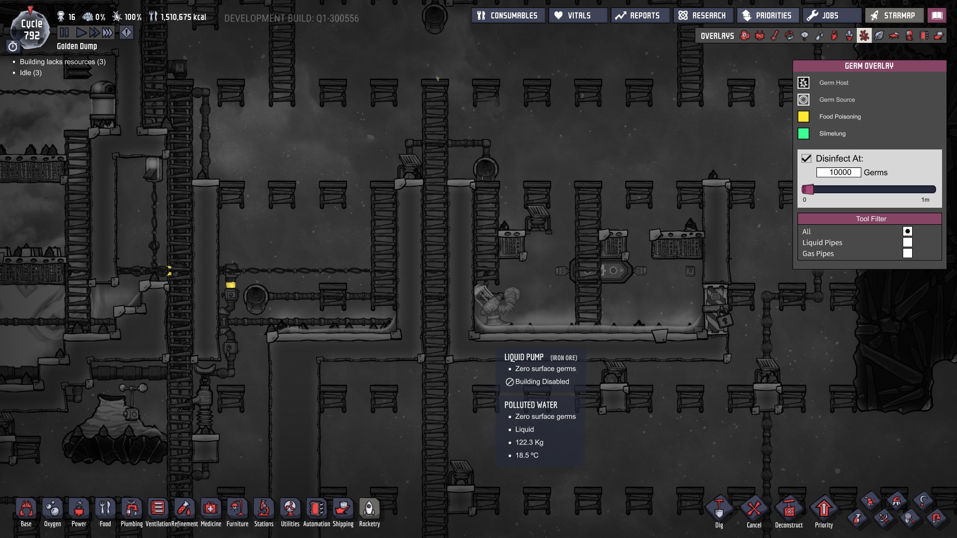 Sigma Cypher Posted December 28, 2018 Share Posted December 28, 2018 Sorry, we're not done with your thread yet @ONIfreak I agree with chlorine being the superior method. No doubt. And for something less efficient -- how about gulp fish? I never _meant_ to de-germify this water, but it happened anyway when I started using the polluted water tank in a radiator loop for my methane distiller. And each gulp fish is making 200g/s of regular water from polluted water. I'm not sure if the gulp fish de-germifies the water or if the cold temperatures are doing it. I'm losing 44% per cycle in the cold but not frozen water. Started cycle 40-ish at 40 million germs (?I think) and now half the pool is completely clean and the other half has 1000 or so left -- and the dupes do their business in it, not to mention the fish. Disgusting I know... Link to comment https://forums.kleientertainment.com/forums/topic/101162-how-to-clean-water-from-germs-in-large-quantities-any-idea/#findComment-1137255 Share on other sites More sharing options...