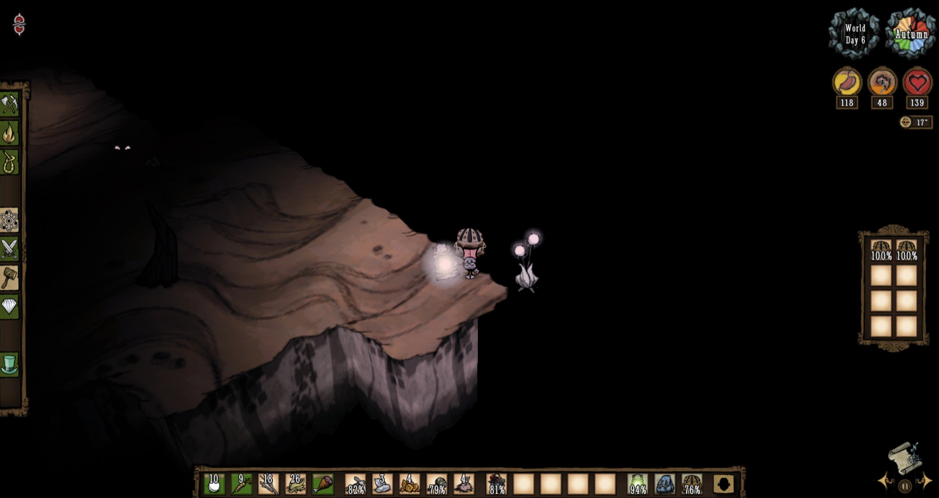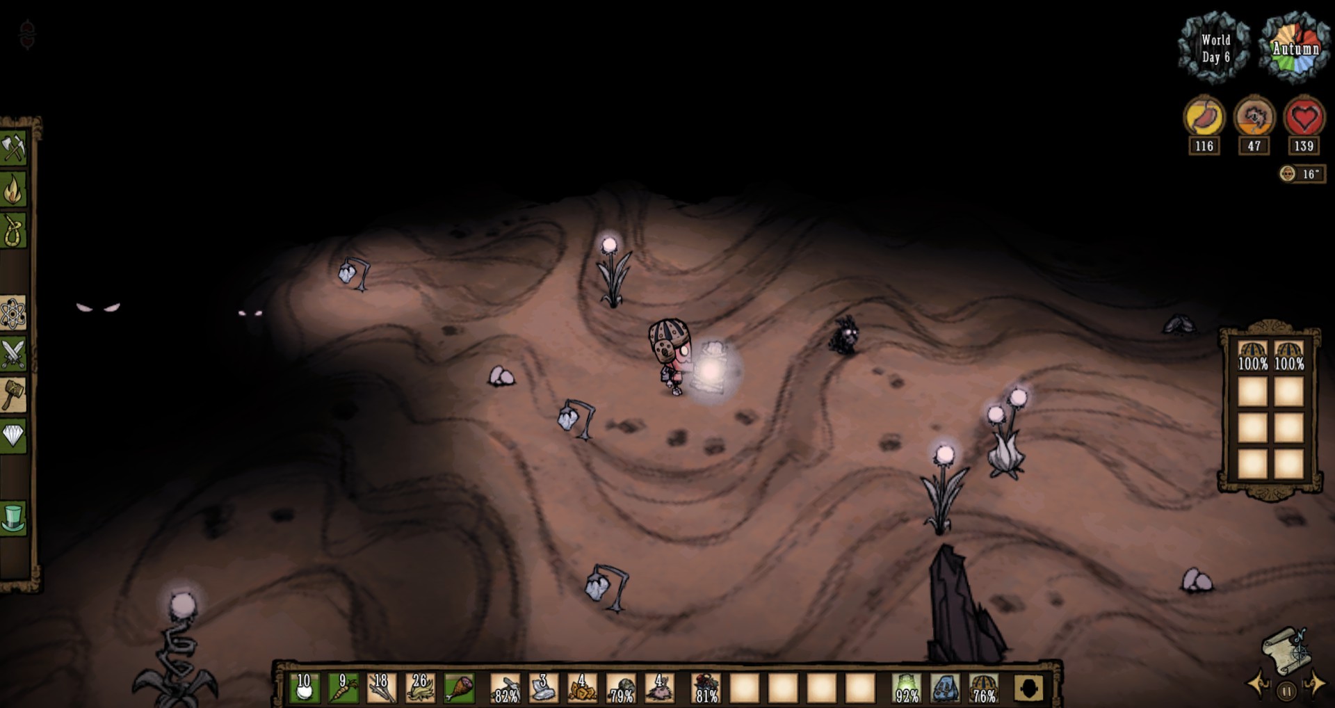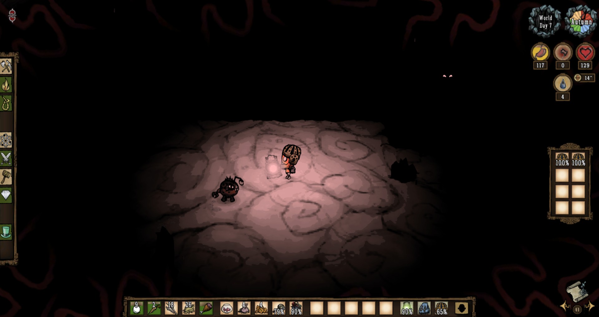Rocketlauncher22 Posted January 24, 2019 Share Posted January 24, 2019 After gathering some items and mining away the sinkhole, i set out on a ruins rush adventure. thankfully, the caves spawned a touchstone that i could use to revive myself if needed. safe and cool, right? . ...right? The world gen also placed a lightbulb plant that was Totally able to be collected! Of course, rabbits also appear in the ruins. That one actually hit me. off topic from the tasty screenshots, but i also met hutch for the first time. pretty neat. "but ruins rushing is easy! you just have to walk in there an-" And that was how i enjoyed an enjoyable spelunk/ruins rush, whatever you call it. Link to comment https://forums.kleientertainment.com/forums/topic/102128-doing-a-spelunk/ Share on other sites More sharing options...