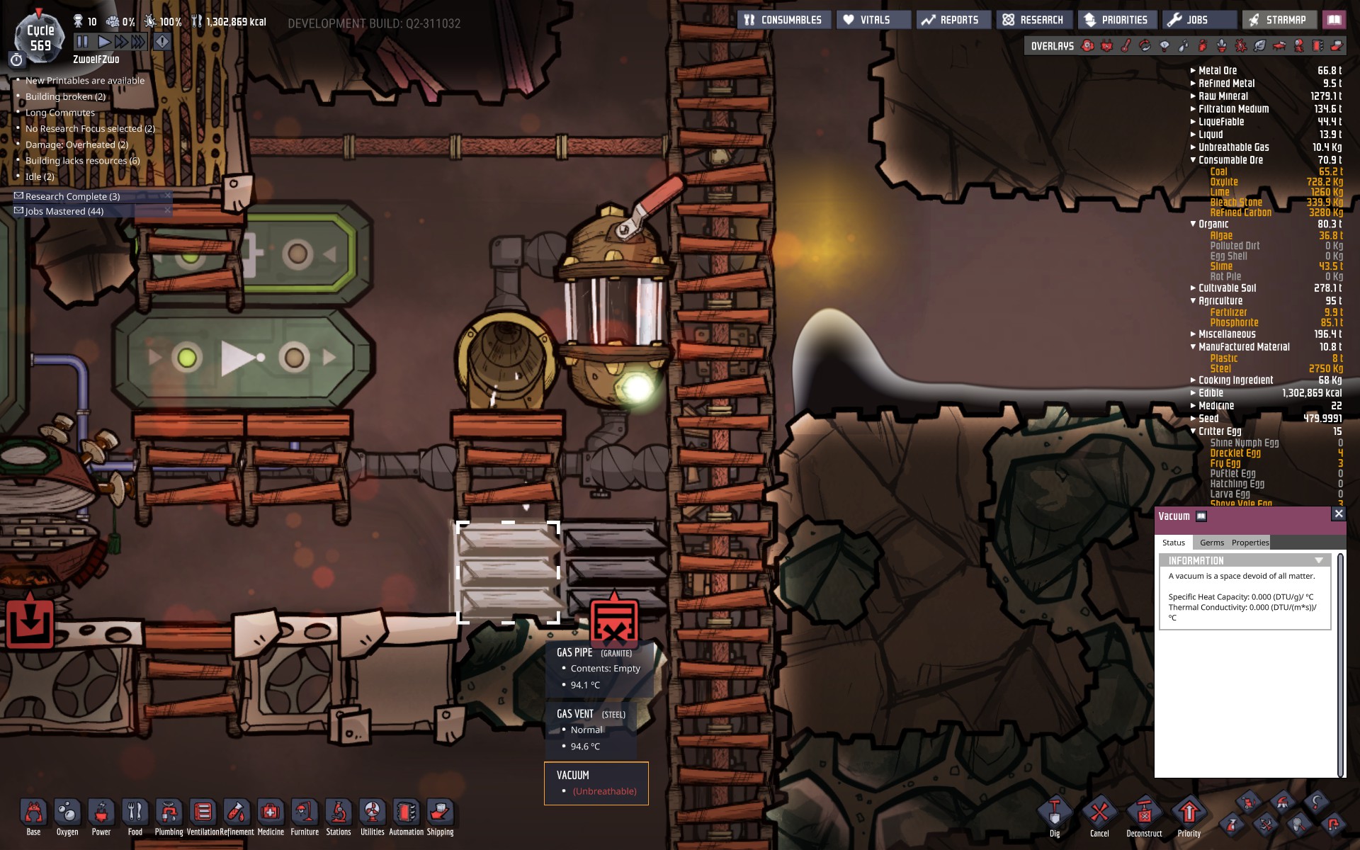 Oozinator Posted February 26, 2019 Author Share Posted February 26, 2019 5 hours ago, mathmanican said: I No automation needed. You could slurp up the entire oil biome into one of these. That bit of automation is not really a problem(when it works, like i think of it). Those doors looking ugly for me. Waterfall mechanic is nice yes, but i am not sure if i like the sound of it more, then the door sounds ^^ I can store whole oil biome there too, or not? Edit: @Saturnus here is an actual example, why i not trust gas interaction. Overpressured vents on the left i drip 5g/sec crude oil - overpressure symbol goes away - one packet leave vent, creates vacuum. Crude oil vanishes, creates vacuum. I bet it's well known, but still weird. Link to comment https://forums.kleientertainment.com/forums/topic/103313-door-compressor-for-unlimited-liquid-storage-is-it-exploity-and-how-to-setup-global-door-timer/#findComment-1159498 Share on other sites More sharing options...