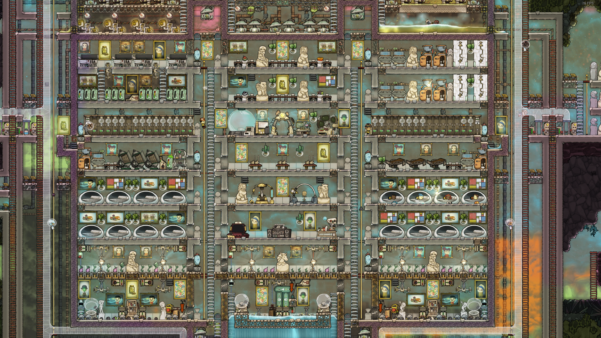 SharraShimada Posted February 27, 2019 Share Posted February 27, 2019 As nice as it looks, your setup results in very long walking paths. The can only change the level on either side, but not in the middle. So, i a dupe stands in the middle of one level, and needs to go to another level to the mid, he walks an entire level for nothing. Having ladders on the sides is not a bad thing, but there should be another ladder somewhere in the mid, to prevent long travelroutes. Link to comment https://forums.kleientertainment.com/forums/topic/103356-critique-on-my-setup/#findComment-1159997 Share on other sites More sharing options...
