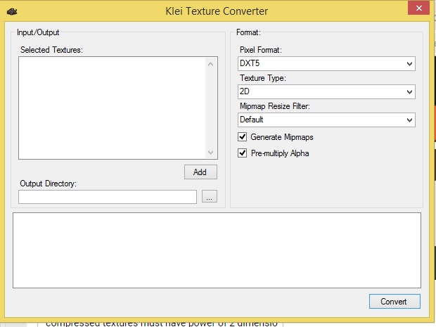 icantevenname Posted February 28, 2019 Share Posted February 28, 2019 With my mods, I've been ignoring the oval portraits and name images because they would always crash the game for reasons I couldn't figure out why. I've even asked before to no responses. I've been looking into it lately and learned that the game runs smoother if they're there, so I've been trying again. But there's this thing statement in the Client Log that I can't understand. names_(character).tex is 876x434 but compressed textures must have power of 2 dimensions. Which I don't understand since I use the TEX Creator with these settings. Can I please get some help? Link to comment https://forums.kleientertainment.com/forums/topic/103367-compressed-textures-must-have-power-of-2-dimensions/ Share on other sites More sharing options...
