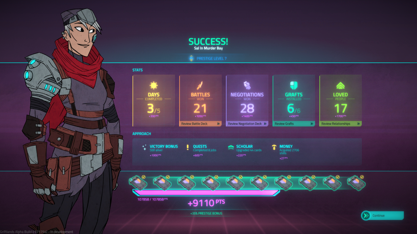 Wumpus the 19th Posted November 5, 2019 Share Posted November 5, 2019 19 minutes ago, s5unaMe said: Oh yea. It took me somewhere around 5 hours to finish. Meh. Hard times. Here is a mutation list (spoiler: all of them are good): - Animal Lover (didn't get any dogs so it's usless); - Barbarous (killed with that ~ 6-8 people so ok); - First Impressions (:D yep it's all about it); - Giant Mechs (still do not know what does it mean); - Loyalty (didn't get any ally lol); - Took Box (got a usless stuff ): ) as someone who hasn't tried to do a mutated run, only pure runs on stable griftlands, i'd assume any mechanized enemies or creature would get buffed, a la robopups and the day 1 boss would be stronger. some of those mutators are for pure gain, some pure loss, and some like mech could probably be a boon or bane. Link to comment https://forums.kleientertainment.com/forums/topic/111769-why-is-it-so-hard-to-break-the-6000-pts-barrier/page/2/#findComment-1280662 Share on other sites More sharing options...