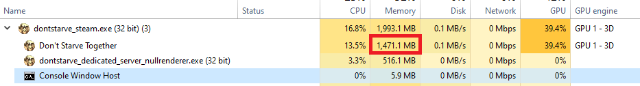 Stop with that "let the modders optimize their mod memory usage" thing. Apart from major algorithmic flaws, most codes have close to optimal memory usage already, even when the programmer is incompetent. Mods don't perform any allocation themselves, they just change game parameters, and memory management is done and already optimized by Klei's engine. That's the point of choosing a high-level language for modding, and telling your modders to perform memory optimization in Lua is already a sign of something wrong.