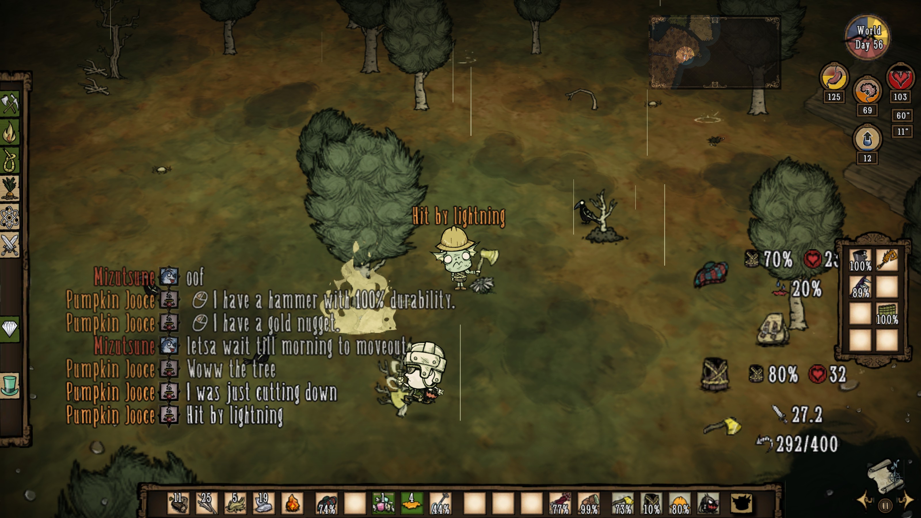 -Finding 3 gears in tumbleweeds as Wormwood, the game crashes and upon booting it up it's rolled back to the morning before.