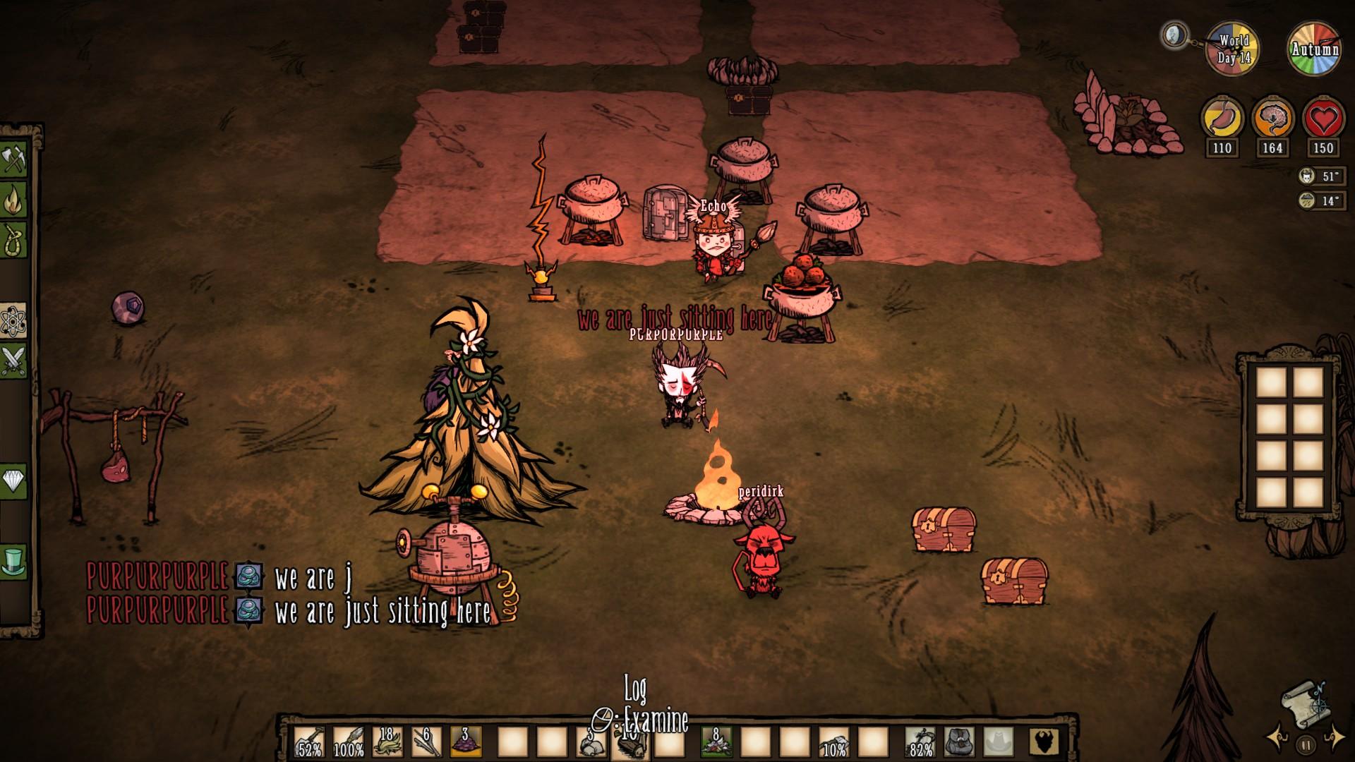 This was when people started to leave, and my game crashed upon picking up a lantern. Everyone was gone, and the Wortox and I decided to take on Bee Queen. We subsequently did not defeat Bee Queen.