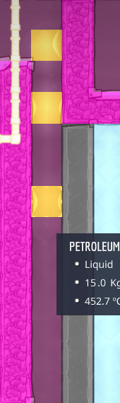 This so far was a though experiment, so let's do some tests.  Here I painted 3 beads of petro at 20kg, ready to fall, as well as what it looks like a few ticks later.