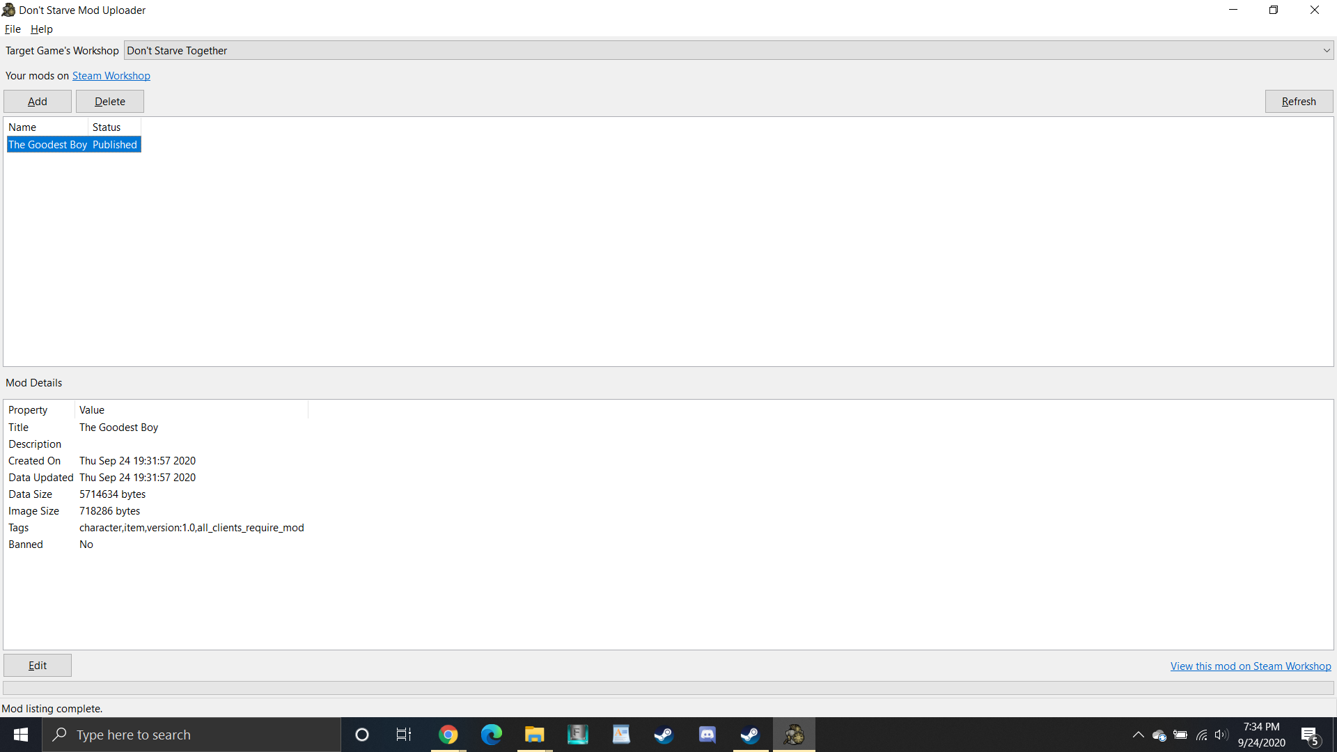 FurryEskimo Posted September 25, 2020 Author Share Posted September 25, 2020 (edited) @penguin0616 Restarted everything, set the privacy to public, checked in the mods tab and the file location, and still nothing.. The mod appears to be uploaded, but I can't download it. You mentioned "griftland mod uploader post" but I'm not sure what that is. I used the mod-uploaded that's in the Don't Starve Mod Tools file location. Edit: The mod appeared in my mod file! Not sure what I did differently.. I was just afk with the mod window open, and when I came back it was there. Edited September 25, 2020 by FurryEskimo Link to comment https://forums.kleientertainment.com/forums/topic/121993-mod-isisnt-on-the-workshop/#findComment-1374378 Share on other sites More sharing options...