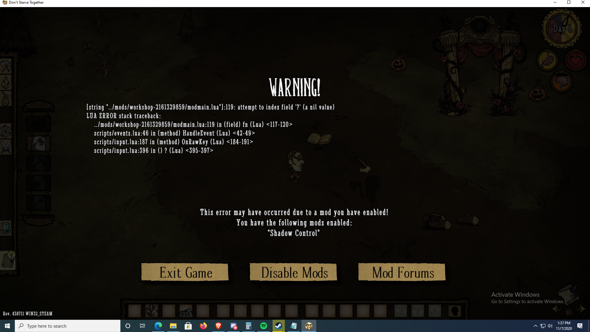 Hutch687 Posted November 7, 2020 Share Posted November 7, 2020 Hey, I am having trouble getting this mod to work: Shadow Control Maxwell is my favorite character because he is so good at farming resources. But in DST my shadow will chop down my twiggy trees unless I unsummon them first before going into my twig farm, which is a massive hassle. I just want a way to make my shadows toggle between passive and active. I thought this mod would do it, but it keeps crashing the game. If anyone could help me get this mod working I would appreciate it enormously. Link to comment https://forums.kleientertainment.com/forums/topic/123218-problem-with-mod-shadow-control/ Share on other sites More sharing options...