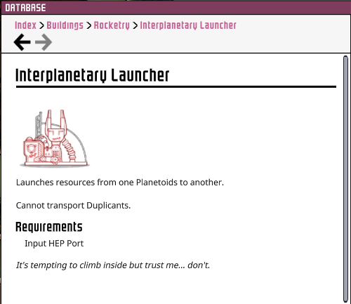 Sebastiangperez Posted November 23, 2020 Author Share Posted November 23, 2020 1 hour ago, Brian.oni said: I think they already have an autopilot mode. Only played around with rockets a little bit in debug/sandbox mode, but I definitely recall seeing the command console saying it was in autopilot. There is some sort of launcher in the database. Not sure that it's meant for rovers, but sound like it could maybe be used for cargo. The HEP (High Energy Port) makes me think that won't go in until the nuclear aspect is put in game though. Maybe because you are in sandbox mode and the rockets do not need crew for launch. Link to comment https://forums.kleientertainment.com/forums/topic/123645-sending-payloads-without-crew/#findComment-1393841 Share on other sites More sharing options...