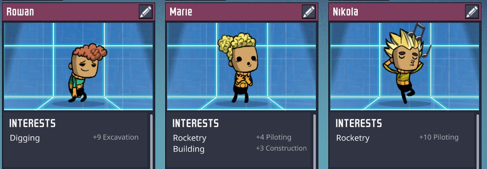 Gunhaver Posted February 6, 2021 Share Posted February 6, 2021 Apologies if this has already been discussed, but I couldn't find answers anywhere. What does the (+#) to rocketry skill do? There's no % attached to it, so I'm stuck wondering if I should recruit that +13 Rocketry dupe. -Also- regarding cooking and metal refining: Does a higher skill lever reduce operating time? If so, then can I conclude that the oven uses less Nat. Gas and the Metal refinery produces less heat overall? Researching does seem to use more resources depending on the dupe researching, so i'm confused. thanks! Link to comment https://forums.kleientertainment.com/forums/topic/126814-questions-regarding-rocketry-interest-and-cooking-speed/ Share on other sites More sharing options...