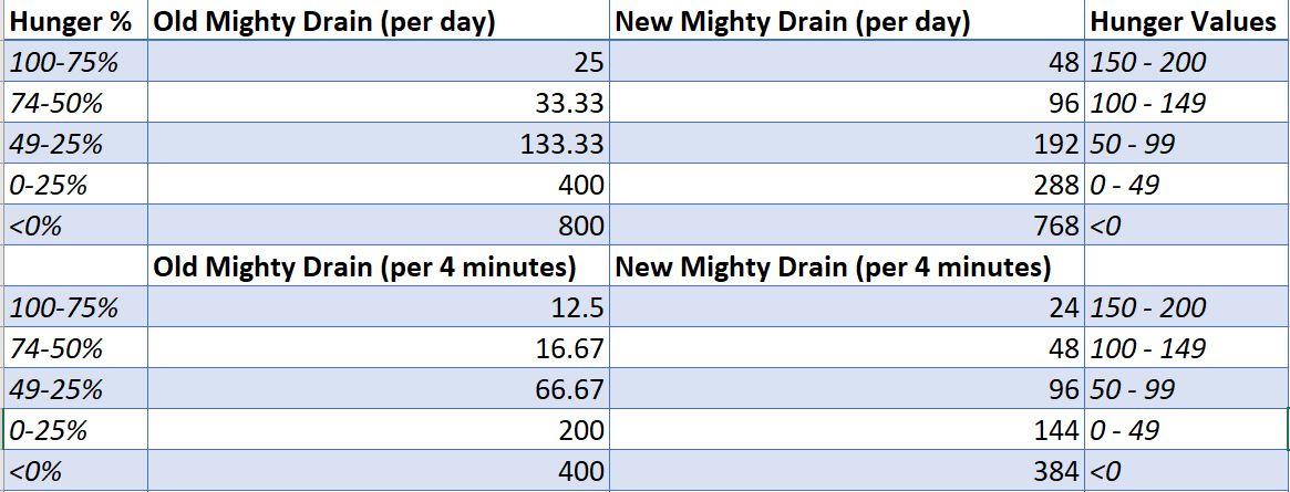 These are the new effective drain rates compared to what they were before they made their change 1-2 patches ago: