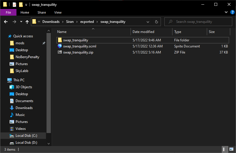 Wonderlarr Posted May 17, 2022 Share Posted May 17, 2022 I believe your issue is that your image file for swap_tranquility isn't inside a folder, it's just sitting in the same folder as the spriter project. Try making it like this With swap_tranquility.png being inside that new folder, and make sure to correct your spriter project with the correct new image, as it won't find the old one now that you've moved it. Link to comment https://forums.kleientertainment.com/forums/topic/140310-equippable-item-for-custom-charater-help/#findComment-1571089 Share on other sites More sharing options...