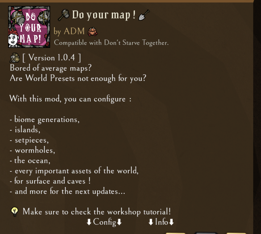 Schulliya Posted July 2, 2022 Share Posted July 2, 2022 (edited) I noticed some mods features emoticons on the description IN GAME, like this one, and I'd like to know how do they do this. I looked into their modinfo.lua, but all the emoticons are a weird square... I tried CTRL+C and CTRL+V the symbol and it showed up correctly, but is there somewhere I can see all the available icons? EDIT: After some research, I discovered those emoticons are the game's emoticons in Curio Cabinet. Each one has a square symbol and all of them are listed in emoji_items.lua. All you have to do is copy and paste the "utf8_str" variable of the emoticon you want to use. Edited July 2, 2022 by Schulliya 2 Link to comment https://forums.kleientertainment.com/forums/topic/141410-self-solved-how-do-i-use-emoticons-in-modinfolua/ Share on other sites More sharing options...