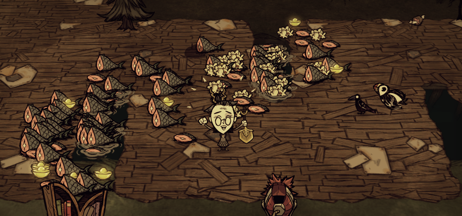 Parusoid Posted July 16, 2022 Share Posted July 16, 2022 Ok since we established wicker can do crazy things with bird book, fish book time for tentacle book with an input of 20 walls and 10 tentacle books i was able to get 8 stacks of montster meat, at least 30 tentacle spikes and 16 tentacle spots (if anyone is interested tentacles are not able to kill toadstool, boomshrooms kill them very quickly for that sweet monster meat) mm farm.mp4 Link to comment https://forums.kleientertainment.com/forums/topic/141734-two-video-examples-how-you-can-farm-crazy-amounts-of-fish-with-new-wickerbooks/page/2/#findComment-1585401 Share on other sites More sharing options...