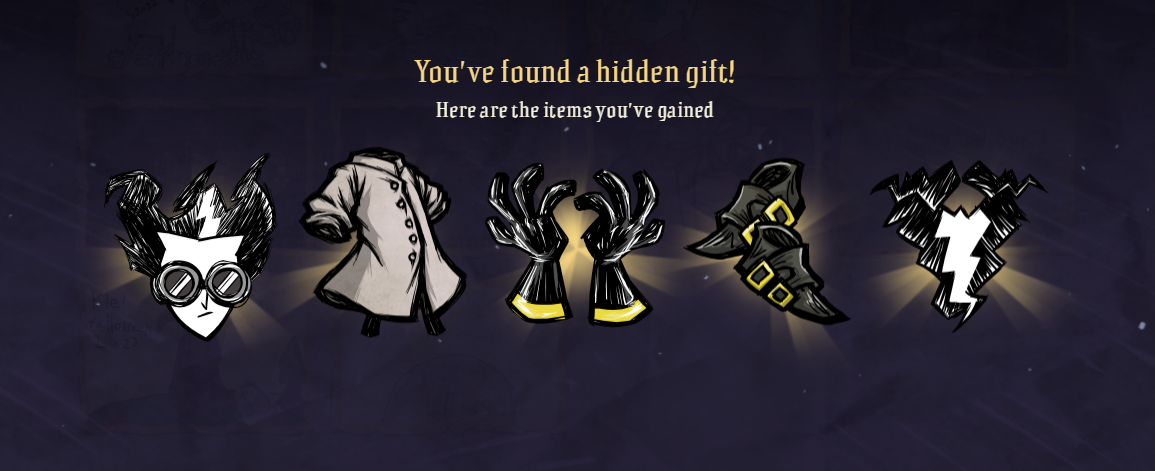 Lord Cafe Posted October 29, 2022 Share Posted October 29, 2022 2 hours ago, Gods fiddler said: The mad scientist wilsonĀ Wait is Klei giving skin rewards or something? Cus i literraly submited my screenshot minutes after the event opening and din't get anything are thoose from this year or it's last year event? Edit: Oh my bad i dint check the updates on the main post found my gift :PĀ Link to comment https://forums.kleientertainment.com/forums/topic/144122-klei-halloween-costume-and-fan-art-submission-event/page/3/#findComment-1605047 Share on other sites More sharing options...