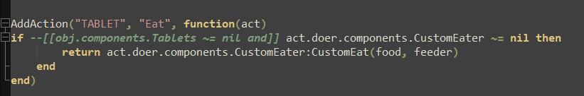 Tejras3 Posted February 25, 2023 Author Share Posted February 25, 2023 21 minutes ago, Merkyrrie said: The parameters in the function call (where you put food and feeder) need to be variables currently accessible in wherever the function is being called. In this case, you want to replace food with "act.invobject" and feeder with "act.doer", as act.invobject in AddAction is the item being used and act.doer is the one doing it. Oh oki understand that too now, had no clue about wtf i needed to put there so just copypasted the function... aaaaaaaand IT FINALLY WORKS THANK YOU I wouldn't been able to do this without your help cuz i wasn't even thinking about eater component, at first i thought that what i needed was EAT action in actions.lua. thankyouu i can finally sleep 1 Link to comment https://forums.kleientertainment.com/forums/topic/146086-finiteuses-on-eatable-item-or-something/#findComment-1621864 Share on other sites More sharing options...