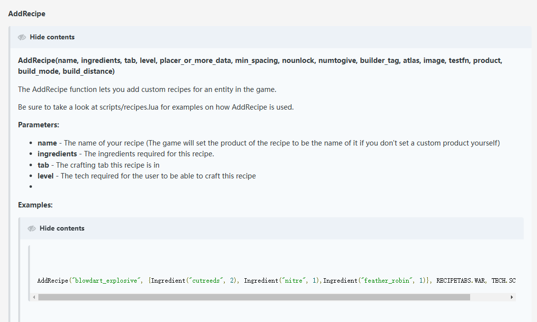 I can only find api AddRecipe,I can't even find AddRecipe2 docs.