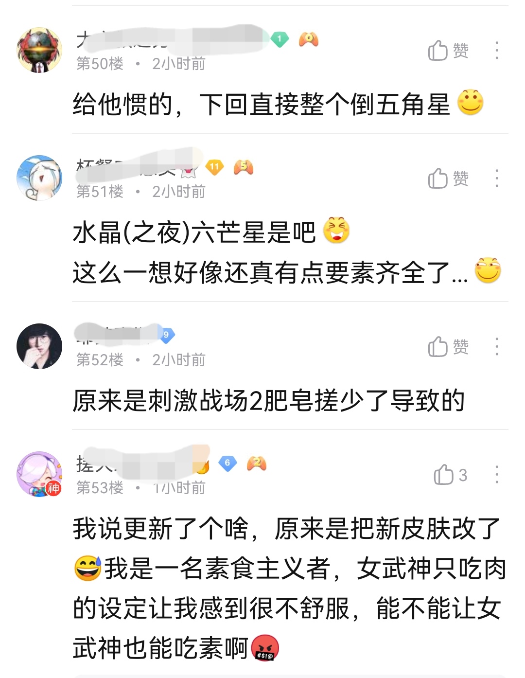 goatt Posted June 29, 2023 Share Posted June 29, 2023 10 minutes ago, NOOOBU said: 可是这显然不是一个好的设计,因为外观上的雷同导致相当多玩家一边倒的认为“这就是Klei顺从了那个犹太人的证据”,从而被抓把柄。 这种风险难道不正是一开始你提过的要规避的敏感点么? 如果我说:“你头上有个脏东西,你把它拿下来。”然后你照做了。你是顺从了我,还是顺从你自己? 如果我(我不是你老板,只是一个路人)说:“你这个设计有不合规范的地方,你改一下。”然后你检查确认后照做了。你是顺从了我,还是顺从了自己的设计原则? Klei确实是按照那个帖子的提议做的,而且很多人都认为应该那么做。这种广泛的认同并不是顺从那个帖子而产生的,而是普遍存在的观点或者潜规则。那个帖子起到的作用只是指出错误点醒所有人而已。 我不太清楚你说的敏感点具体指哪个? Link to comment https://forums.kleientertainment.com/forums/topic/148812-content-warning-i-hope-klei-can-explain-what-is%E2%80%9Cour-chinese-community-are-largely-supportive%E2%80%9D/page/6/#findComment-1644408 Share on other sites More sharing options...