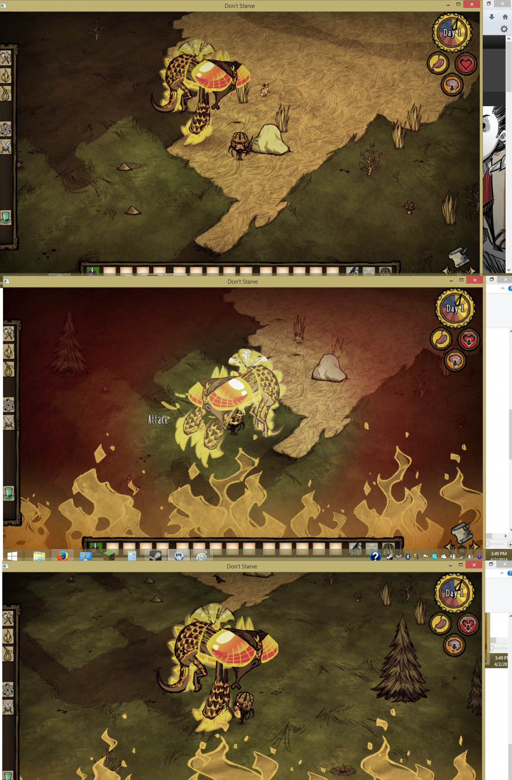 Oh, and i'm not even joking when i say this, he randomly sets the ground on fire. HE CAN CAUSE MASSIVE FOREST FIRES OR WORSE.