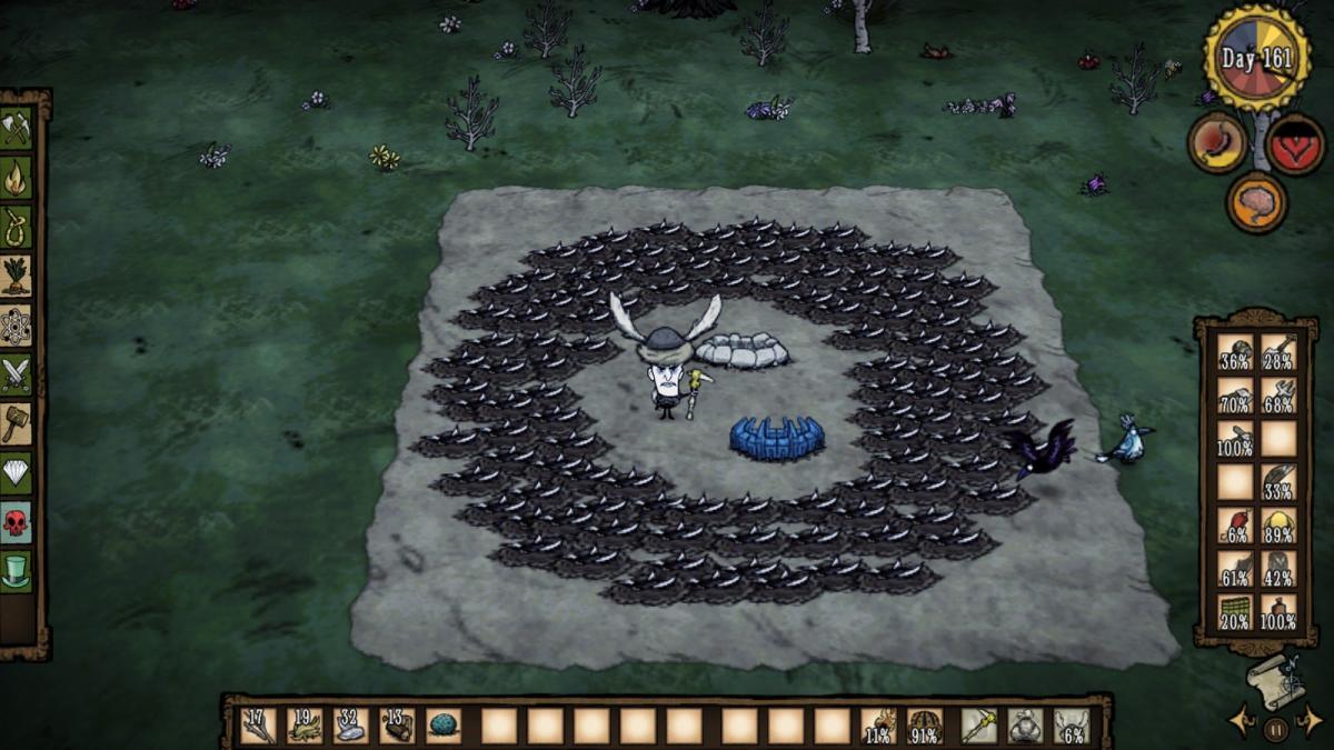 StayUpThere Posted July 7, 2014 Share Posted July 7, 2014 First option is to use the beefalo thats also what I do early game. You could also build a bunch of pig houses and rabbit houses near your base. Pigs for the day and Rabbits for the night time. Another option and my favorite is tooth traps. I usually start setting up a bunch of tooth traps around day 100. But sometimes I feel like I need more traps and dont use it till day 150 but it all depends how many hounds teeth you have. Beefalo work fine for the most part but I still think tooth traps are more efficient. When I make a tooth trap feild I use no walls!! Just make a big circular set of traps and stand in the middle or run in circles around the traps while dogs chase you. They will all die very fast no matter how many hounds come if you have enough traps. Here is my tooth trap setup so far, I am going to add more as I kill em:. Link to comment https://forums.kleientertainment.com/forums/topic/37996-hounds/#findComment-507782 Share on other sites More sharing options...