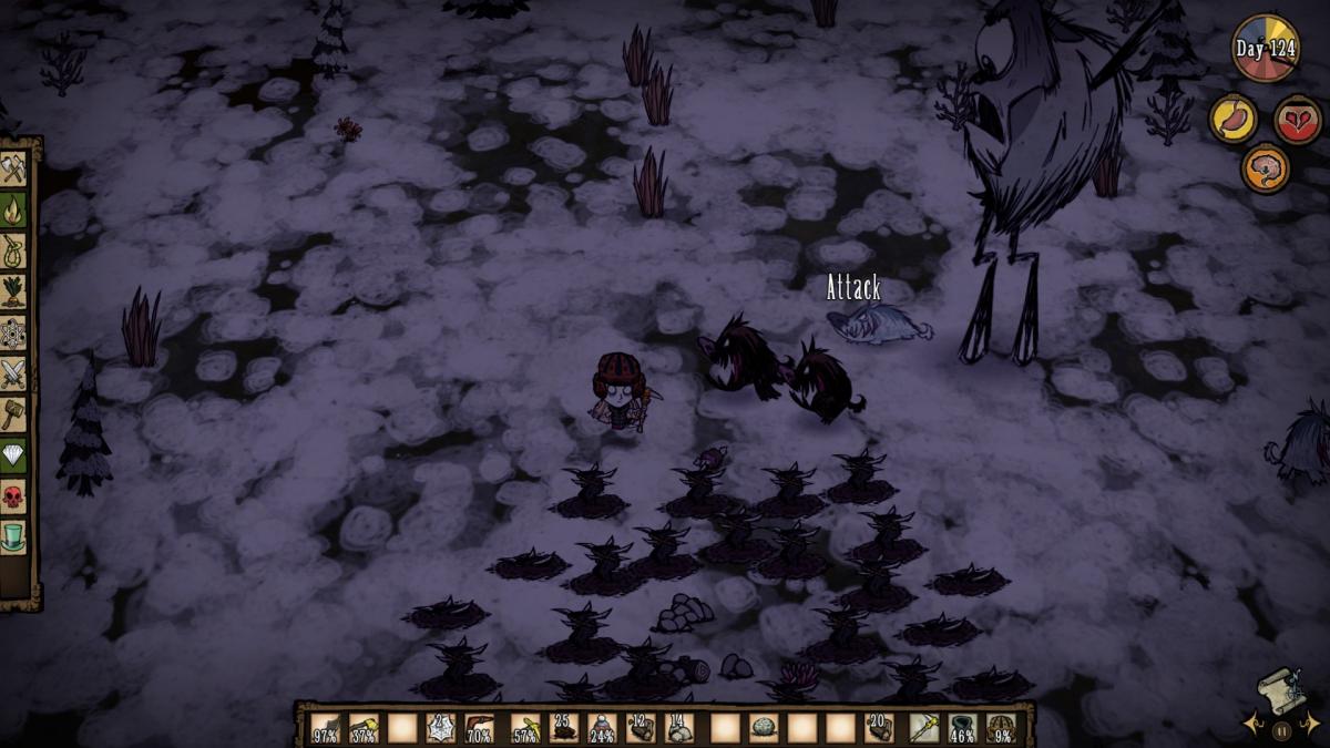 Tamazacat Posted December 23, 2014 Share Posted December 23, 2014 Playing as Wendy and I hear deerclops as dusk is ending and I'm in my base. In my panic I forget to take most of my fighting gear - blow darts, log suit, etc. I even forgot about the dark sword in my inventory. I go to my nearby hound-fighting arena to minimise the damage. Night falls. I hear one ground-shaking footstep of that hooved monster, but no more. Worrying he might be attacking my base (only 2 screens away, thereabouts), I constantly check the map that night. No damage to my base. No damage elsewhere. I might actually be safe. He might have despawned. I realised my error in judgement after a whole night of checking my map. I ran to my base, Abigail in tow. I watch as he destroys one of my chests and eyes up Snow-Chester. "What do we say to the God of Death?""NOT TODAY!" I smack him before he starts attacking Chester and destroying more structures. I lure him over to the arena where he smashes my firepit as dusk approaches. Abigail is down for the count. I have to make do with the few tooth traps that I have. All of a sudden I hear hounds.Not hounds. Not now.The hounds bark and race towards me. They start giving chase as I outrun them and Deerclops with my walking cane. With most of the traps sprung, they're useless and I can't reset them with these scalywags on my tail. Eventually the hounds tire and find a new victim: the Deerclops. With Deerclops damaged by my traps, he's weak and it only takes a few bites from the hounds to gnaw him to death. In his last breath he falls to the hounds.With a sigh of relief, I realise my dark sword was in my inventory the whole time. Time to deal with the hounds. That was the easiest encounter with Deerclops I've ever had. __________________________________________________________________ TL;DR: Deerclops came, hounds saw, I conquered. Link to comment https://forums.kleientertainment.com/forums/topic/47104-most-unlucky-moment-and-you-survived/#findComment-592012 Share on other sites More sharing options...