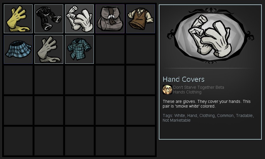 Just looking to trade some common dupes for other commons I don't have. I have gray long gloves and a tan skirt to trade.