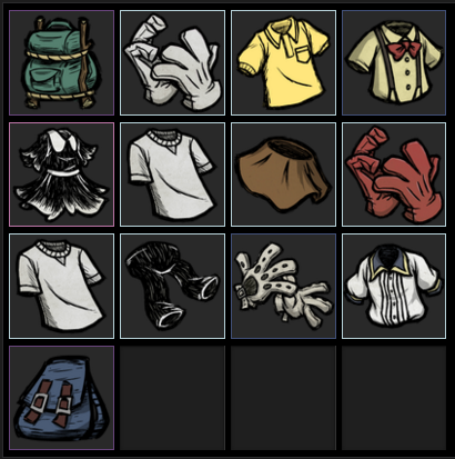 Everyone else here is way ahead of me in terms of rarity and quantity of clothes, but I have to start somewhere. Here is my current inventory and my trade rates.