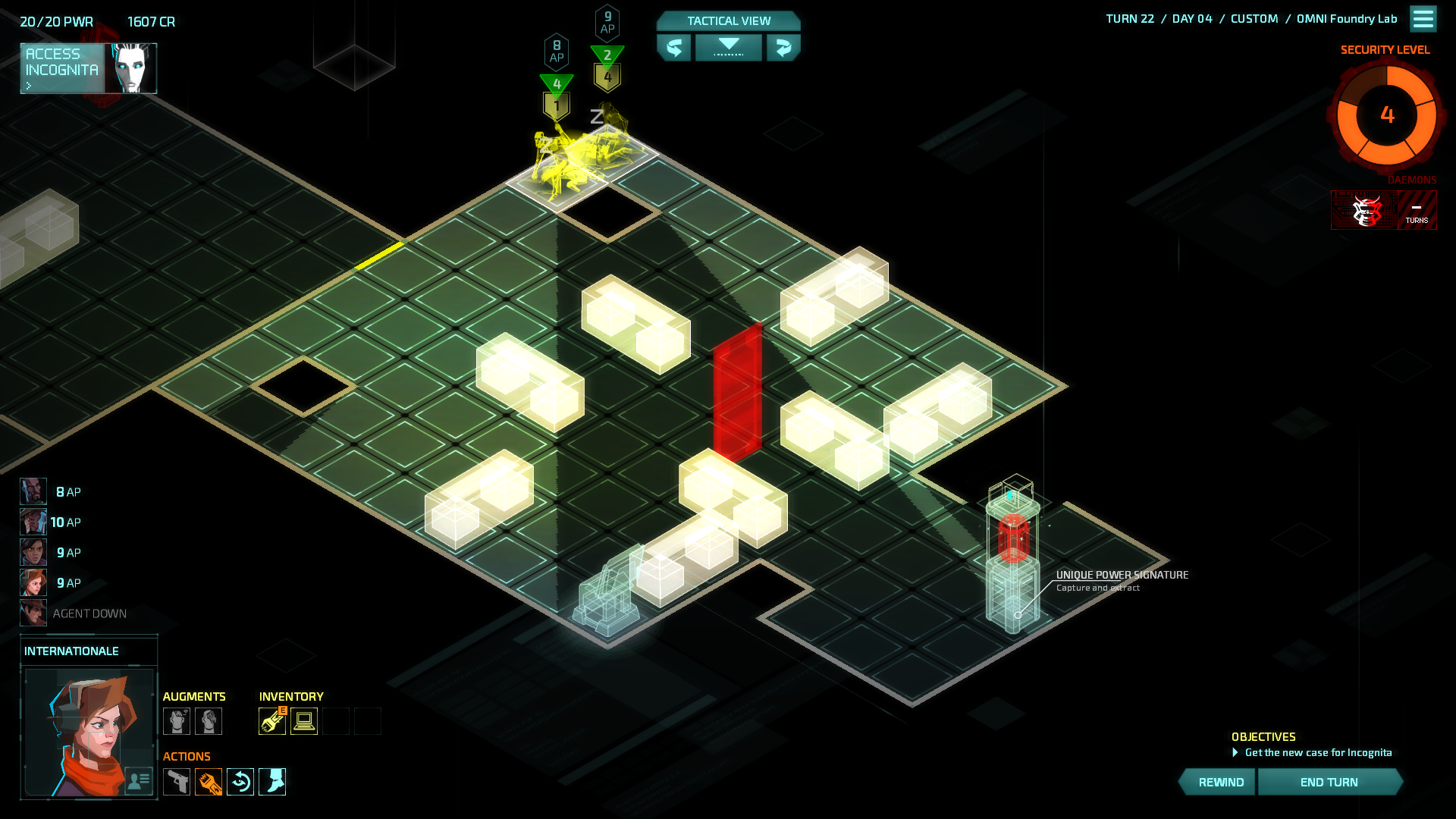 Mike17 Posted February 5, 2016 Share Posted February 5, 2016 I started playing Invisible Inc. yesterday and now i have problems finishing this level. The 72 hours were over and I was send to a special mission with monster. Had to find two consoles and activate them at the same time. This unlocked a 3x3 teleporter room and brought me to the next level. My objectives are: --> Get the new case for Incognita --> Survive until turn 20. I'm pretty sure I found this "new case" thing, but its locked behind a red door. And I don't mean a regular red door, but a door which appears red in Incognita-Hacking-Mode (, see attached file). I have no clue how to get through. I think I uncovered the whole map and I ambushed the two scientists, hoping they would drop somehting that helps me. But they didn't. It's kind of frustrating, because until this debacle I did fairly well. Thanks for your help. Link to comment https://forums.kleientertainment.com/forums/topic/63793-unable-to-finish-mission/ Share on other sites More sharing options...