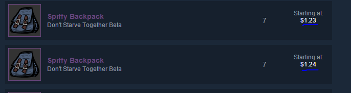 alainmcd Posted February 12, 2016 Share Posted February 12, 2016 Yeah, apparently they need to be delisted, but seems like every new listing is goes to a new, separate category. I see pretty much every item in separate categories. http://steamcommunity.com/market/listings/322330/Spiffy%20Rucksack vs http://steamcommunity.com/market/listings/322330/BACKPACK_CAMPING_GREEN_VIRIDIAN or http://steamcommunity.com/market/listings/322330/Spiffy%20Buckled%20Backpack vs http://steamcommunity.com/market/listings/322330/BACKPACK_BUCKLE_RED_ROOK Link to comment https://forums.kleientertainment.com/forums/topic/64216-market-listings-grouping-incorrectly/#findComment-721331 Share on other sites More sharing options...