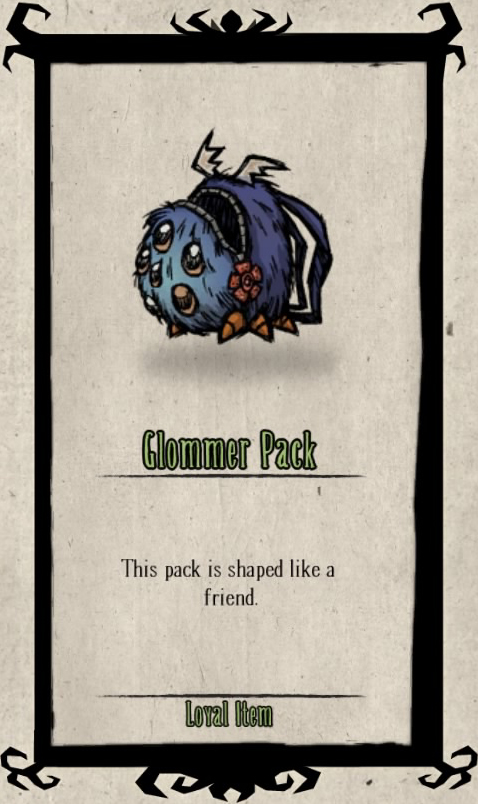 hkhm Posted November 3, 2016 Share Posted November 3, 2016 glommer pack in the inventory screen and the glommer pack on wickerbottom: 12 Link to comment https://forums.kleientertainment.com/forums/topic/64924-all-released-skins-as-of-now/page/55/#findComment-832685 Share on other sites More sharing options...