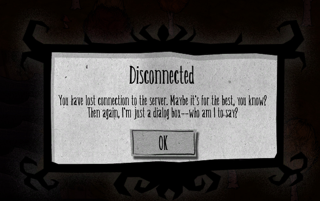Developer ImDaMisterL Posted March 2, 2016 Developer Share Posted March 2, 2016 Well, seeing as how it started after the latest update and you are sure it isn't your internet, then please report this in the DST bug tracker: http://forums.kleientertainment.com/klei-bug-tracker/dont-starve-together/ Thank you Link to comment https://forums.kleientertainment.com/forums/topic/65008-disconnecting/#findComment-729113 Share on other sites More sharing options...
