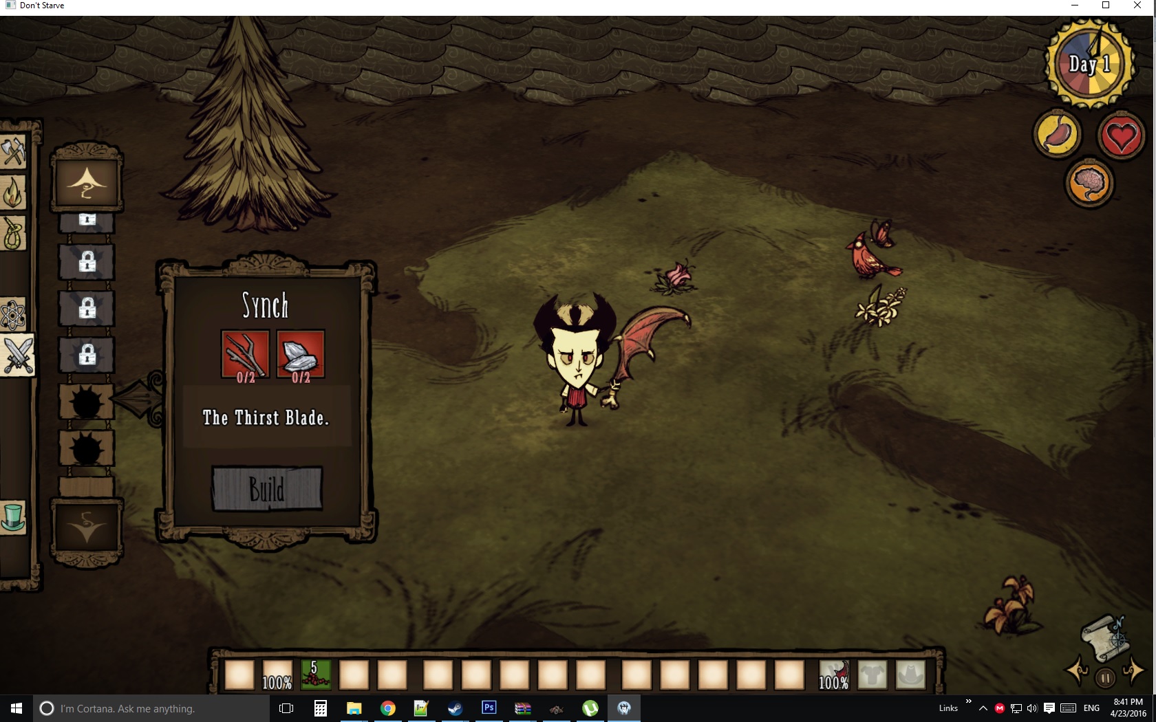 Aquaterion Posted April 23, 2016 Share Posted April 23, 2016 1 minute ago, Vecto0r said: local Ingredient = GLOBAL.Ingredient local RECIPETABS = GLOBAL.RECIPETABS local STRINGS = GLOBAL.STRINGS local TECH = GLOBAL.TECH local character_ingredient = GLOBAL.CHARACTER_INGREDIENT STRINGS.NAMES.SYNCH = "Synch" STRINGS.CHARACTERS.GENERIC.DESCRIBE.SYNCH = "He Loves Blood Taste." STRINGS.RECIPE_DESC.SYNCH = "The Thirst Blade." --Recipe("synch", { Ingredient("twigs", 2), Ingredient("flint", 2)}, RECIPETABS.WAR, TECH.NONE, nil, nil, nil, nil, "images/inventoryimages/synch.xml", "synch.tex") Recipe("synch", { Ingredient("twigs", 2), Ingredient("flint", 2), Ingredient(character_ingredient.HEALTH, 10)}, RECIPETABS.WAR, TECH.NONE, nil, nil, nil, nil, nil, "images/inventoryimages/synch.xml", "synch.tex") ------------------------------------ my code is like this now but dont worked, i get same error Hmm I don't think dont starve singleplayer has any stat ingredients. Link to comment https://forums.kleientertainment.com/forums/topic/66601-help-with-modding-recipes-with-healt-sanity-cost/#findComment-755118 Share on other sites More sharing options...