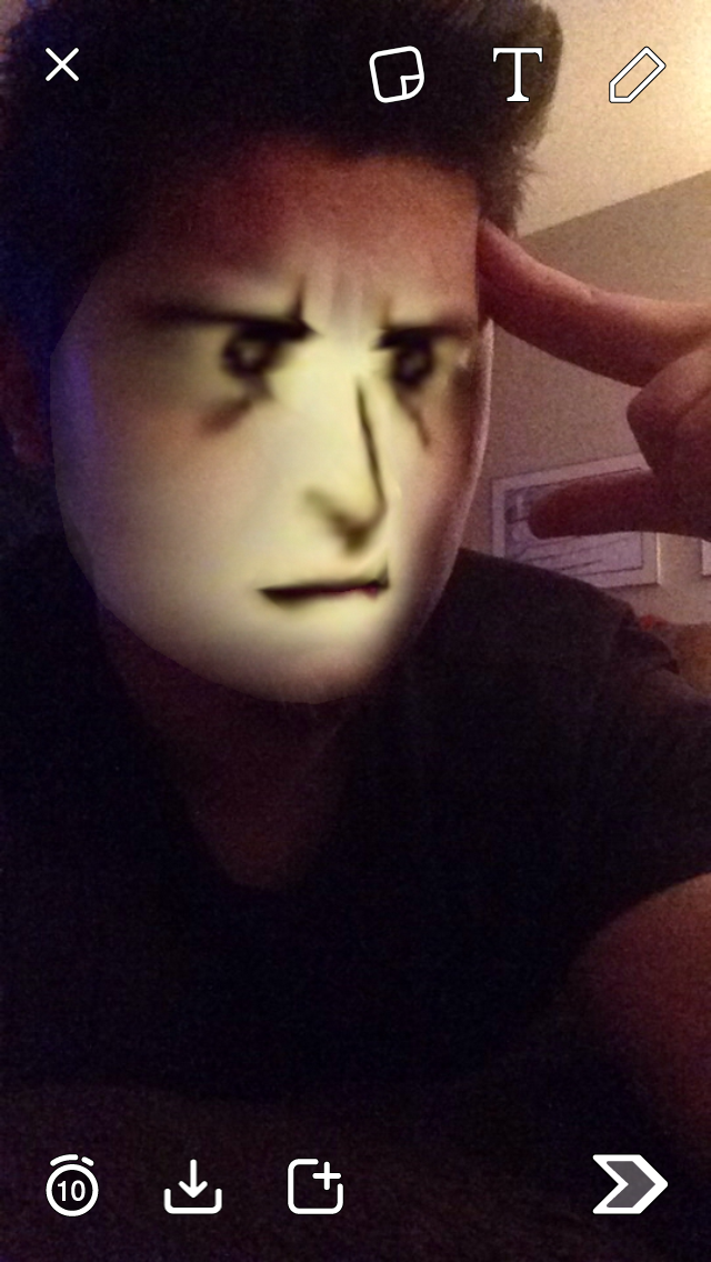 SinisterSmiles Posted May 5, 2016 Share Posted May 5, 2016 I was playing around with the Snapchat special effects. Specificly the one that allows you to swap your face with a picture on your phone. "Hey Baby wanna kill all humans?" "It's all Piney" "I'm so sorry, Charlie" Link to comment https://forums.kleientertainment.com/forums/topic/67023-dont-starve-snapchat/ Share on other sites More sharing options...