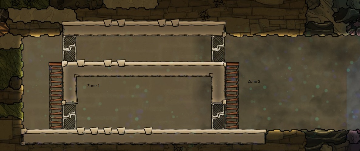 Positioning: Zones can be separate, or they can overlap, this allows us to maintain a purposeful separation of dupes when performing particular jobs, like wise management but also allows for multiple dupes to touch the same objects in another zone when they overlap even when not idle.