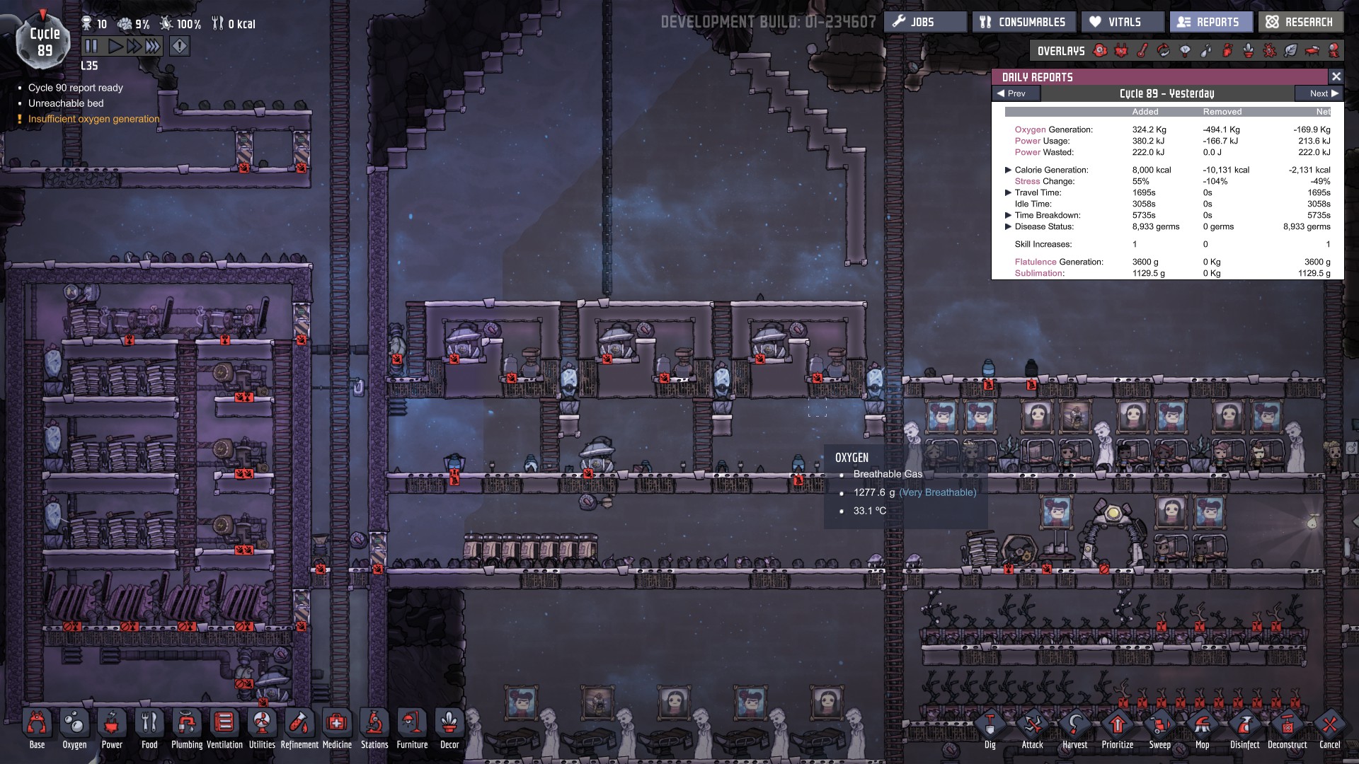 Saturnus Posted September 28, 2017 Share Posted September 28, 2017 5 minutes ago, Anduril said: How many electrolyzers have you at this stage of game with 10 dupes? About same ratio, currently have 6 with 18 dupes but they don't run all the time and air pressure is close to max at all times. It's actually intentional that I don't run them constantly as it makes cooling quite manageable. Link to comment https://forums.kleientertainment.com/forums/topic/82467-inefffective-electrolyzer/#findComment-958889 Share on other sites More sharing options...