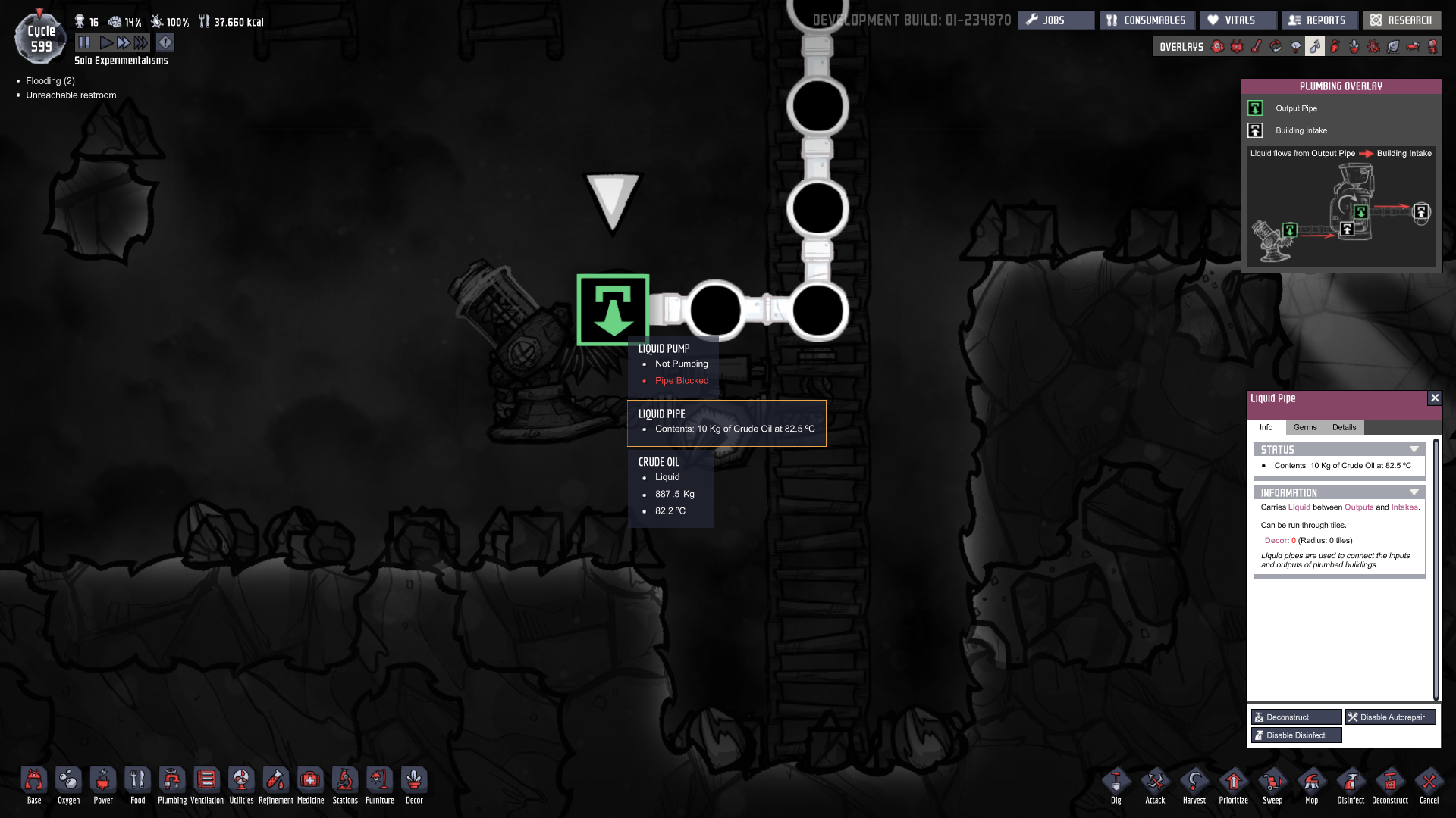 The same is true of buildings that only use a small amount of water/s.  If you watch the plumbing overlay while a dupe showers for instance, tiny packets of polluted water exit the waste pipe, and tiny packets move between the large packets in the feed pipe.