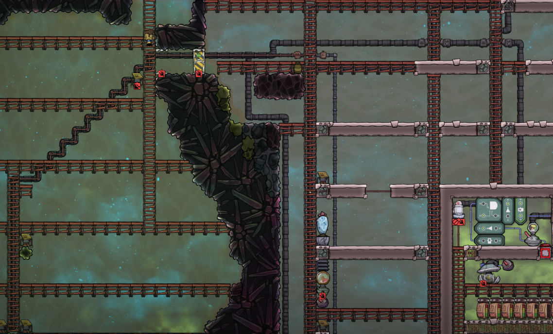 Suicidal Dupes, oh dear lord the suicide watch.  Dig some stuff then climb out onto empty air and fall to their deaths::shudders::  Anyone else having this problem consistently?  Like dupes just HAVE to be on those missing places?  They may not die but all the extra rescue work gets annoying XD I usually alt f4 out when someone dies so I can reload the cycle and watch it happen to figure out if it was me or them...... unless I issue my orders in just such a way that it leaves nothing for them to climb up on, and have a safety floor beneath.... they find elaborate ways to trap themselves in odd spaces :)