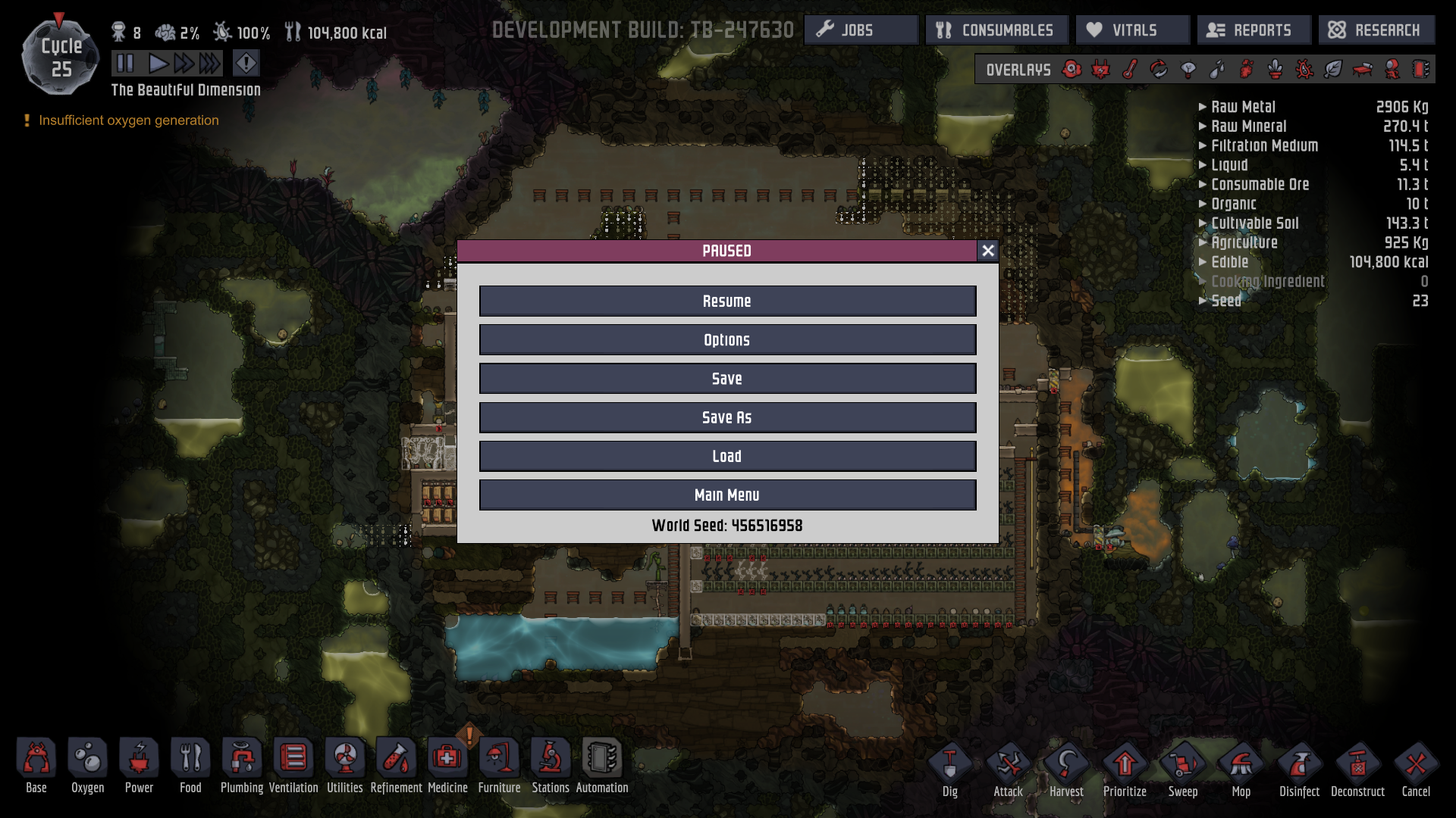 Thought we might could make this the new seed thread as the old thread has older update seeds in it :), nice natural balm lily and pincha pepper farm in upper left, multiple thimble reed access w/o going through any slime at all, plus nat gas geyser right by base.  Only 6 hatch so far, the water was all the way across before but all below.  Theres a nice caustic path down to the oil right beneath the nat geyser :) 456516958