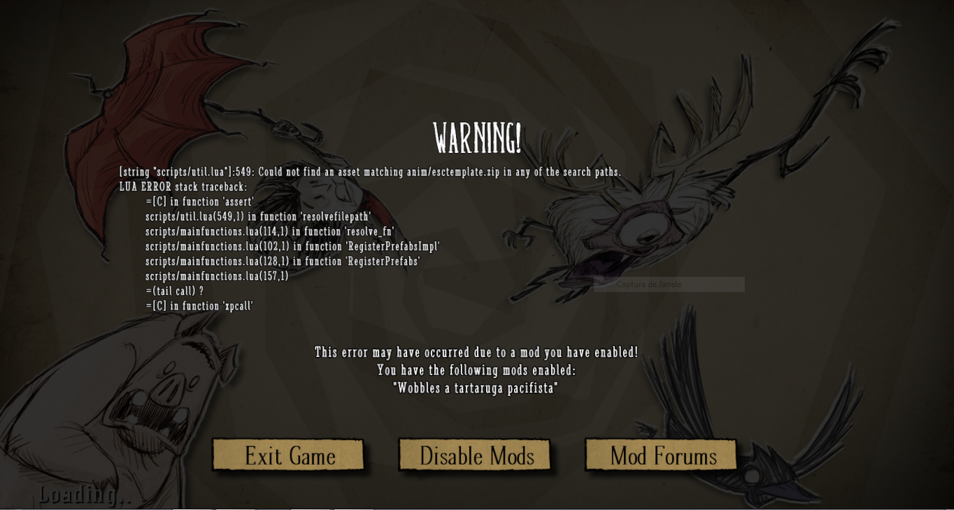 Aquaterion Posted February 7, 2018 Share Posted February 7, 2018 In your code somewhere, you are trying to call the asset "esctemplate.zip", which doesn't seem to exist, so if you're no longer using that rename it in the code. Link to comment https://forums.kleientertainment.com/forums/topic/87099-i-create-a-mod-and-crashes/#findComment-1000700 Share on other sites More sharing options...