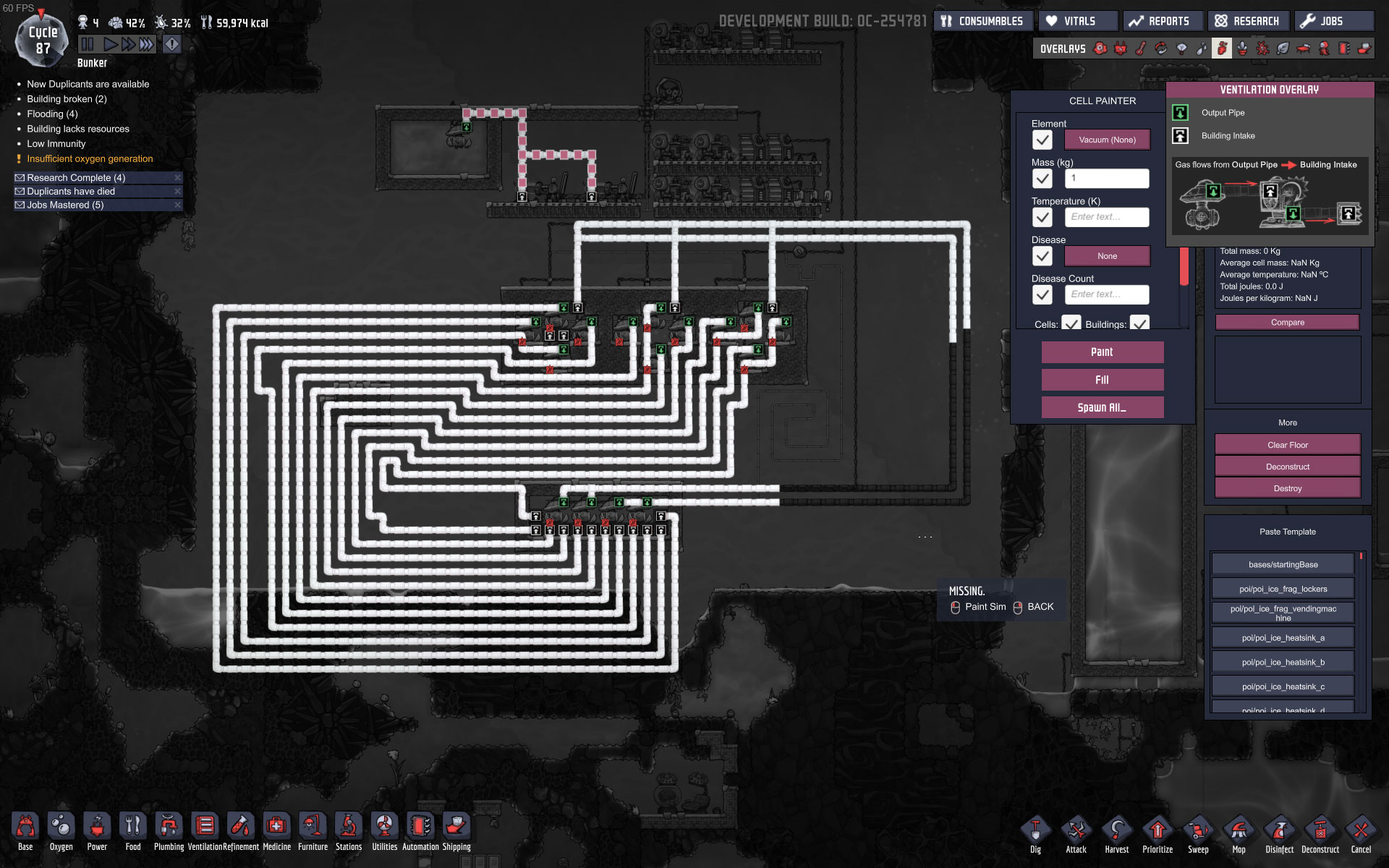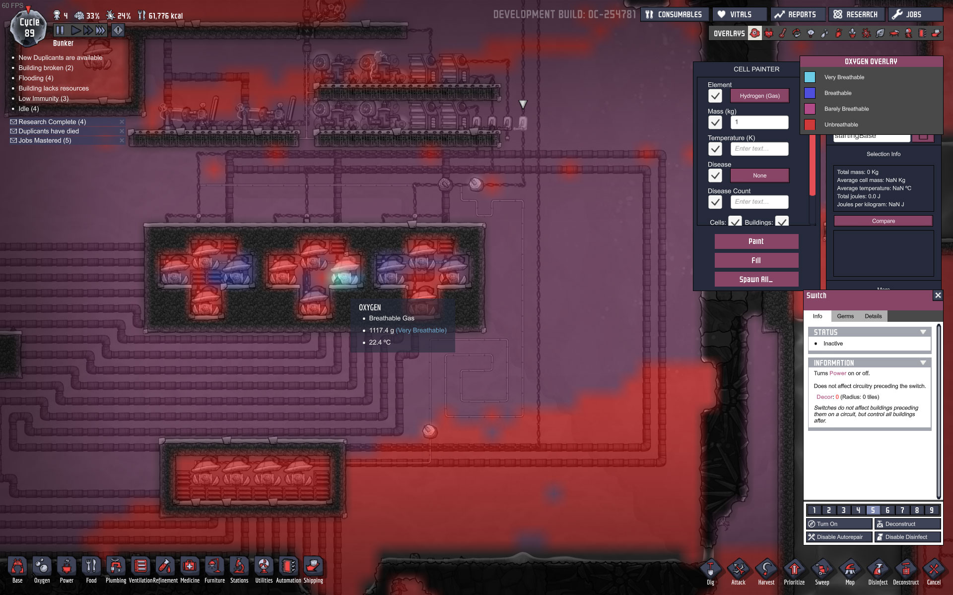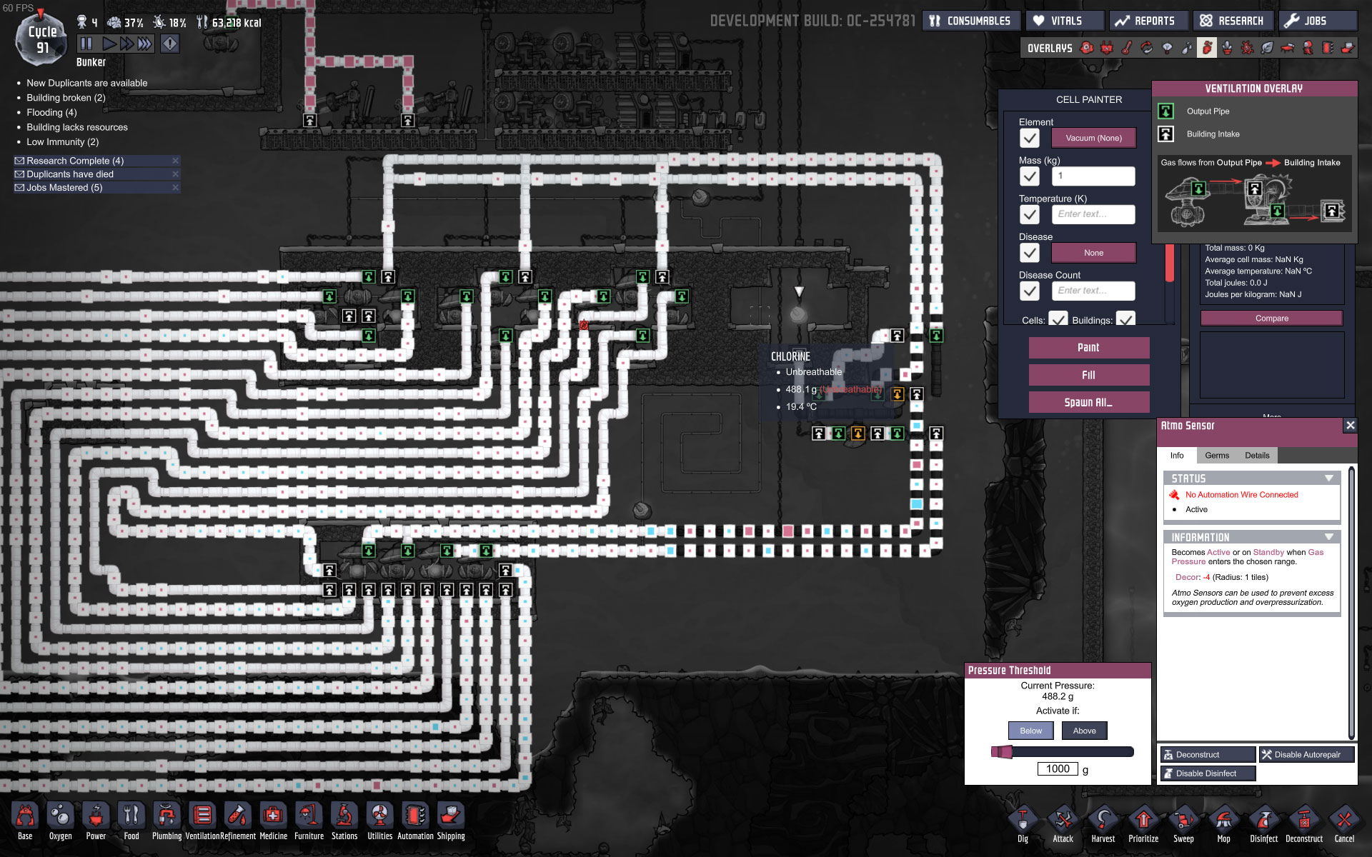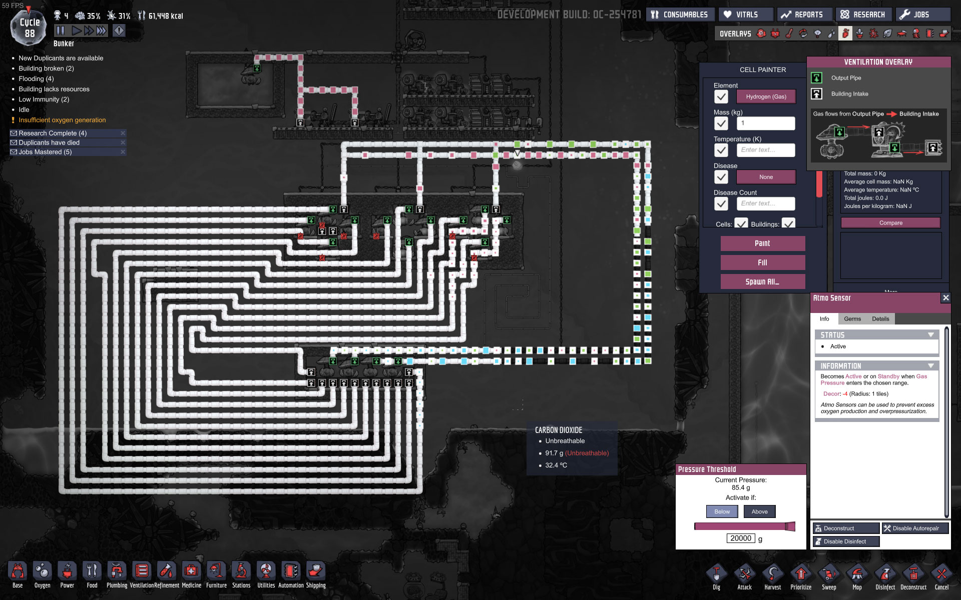 I did a quick testrun, filled each of the three upper chambers with different gasses/ 1Kg per tile, pump it to the lower chamber, mix it and pump it back.