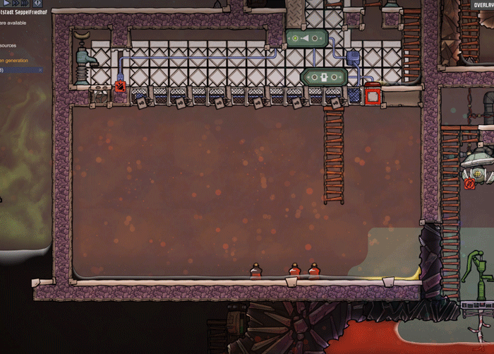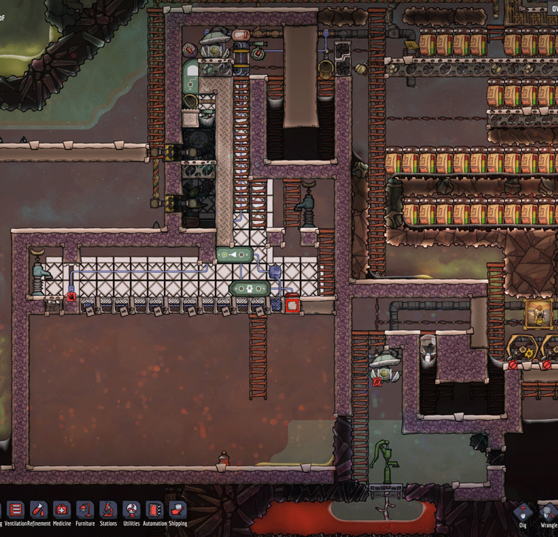 Oozinator Posted March 24, 2018 Share Posted March 24, 2018 That was really fun to do and it works nice. When the dupe is triggering the pressure plate, way to bottle emptier is cut off and dupe drops the bottle. Rest is a standard boilerdesign with cooling. The special bonus +++ positive effect of that Bottocookinator ™ is: Magma stays in the bottle and not giving piles of ingenous rock. Heat transfers well. Dupes can carry magmabottles very easy, in one travelroute, when bottles are cooled down and empty it somewhere else, very easy (dupeproof). That thing is cooking enough NG for ten bases, when i give my brave dupes the order to do so. Link to comment https://forums.kleientertainment.com/forums/topic/89042-the-bottocookinator-%E2%84%A2-a-smart-way-to-cook-oil-with-magmabottles/ Share on other sites More sharing options...