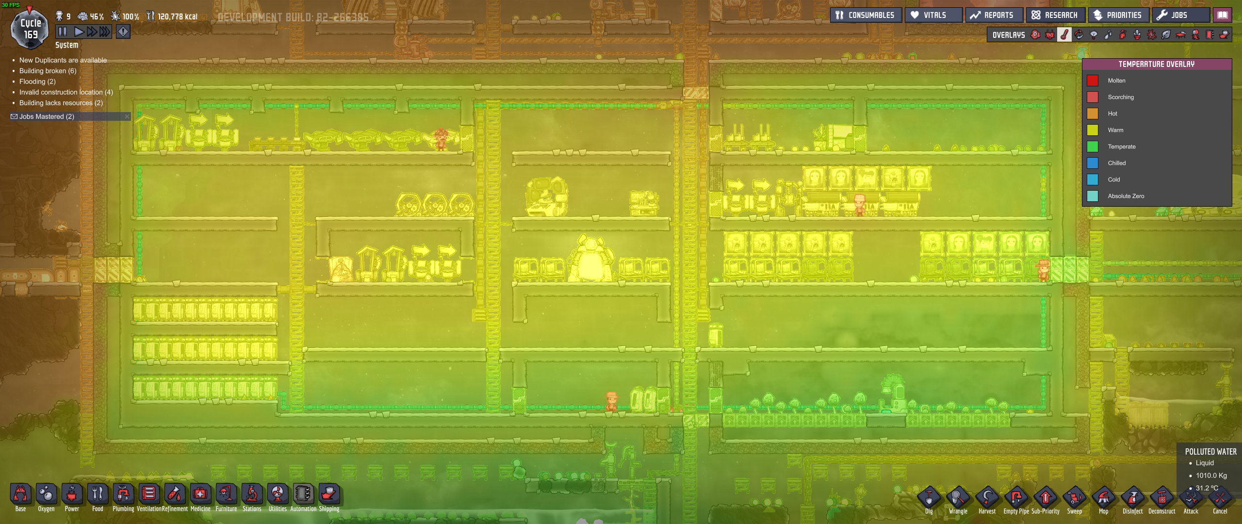 onebit Posted May 2, 2018 Author Share Posted May 2, 2018 I learned that lesson in in my last play through. I left everything open air and around cycle 150 everything went to hell. This time I went for a clear delineation between inside and outside. The electric grills (one in use at a time) and massage tables are the only interior heat producers. Besides liquid based sanitation and some bristle blossoms that's all I'll put inside. I'm deciding between vacuum sealing the walls or pumping in chlorine and installing some wheezeworts on the left side. @TheScaryOne It seems pretty open to me. What did you want to put in there? Link to comment https://forums.kleientertainment.com/forums/topic/90421-insulated-fortress/#findComment-1032012 Share on other sites More sharing options...