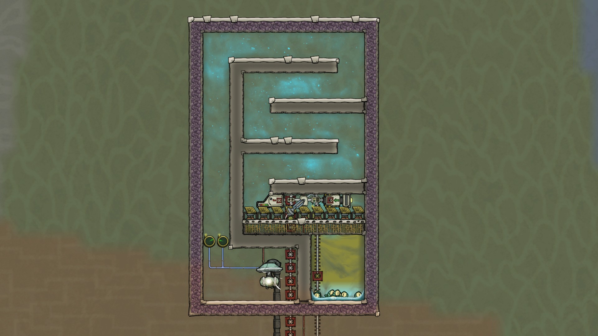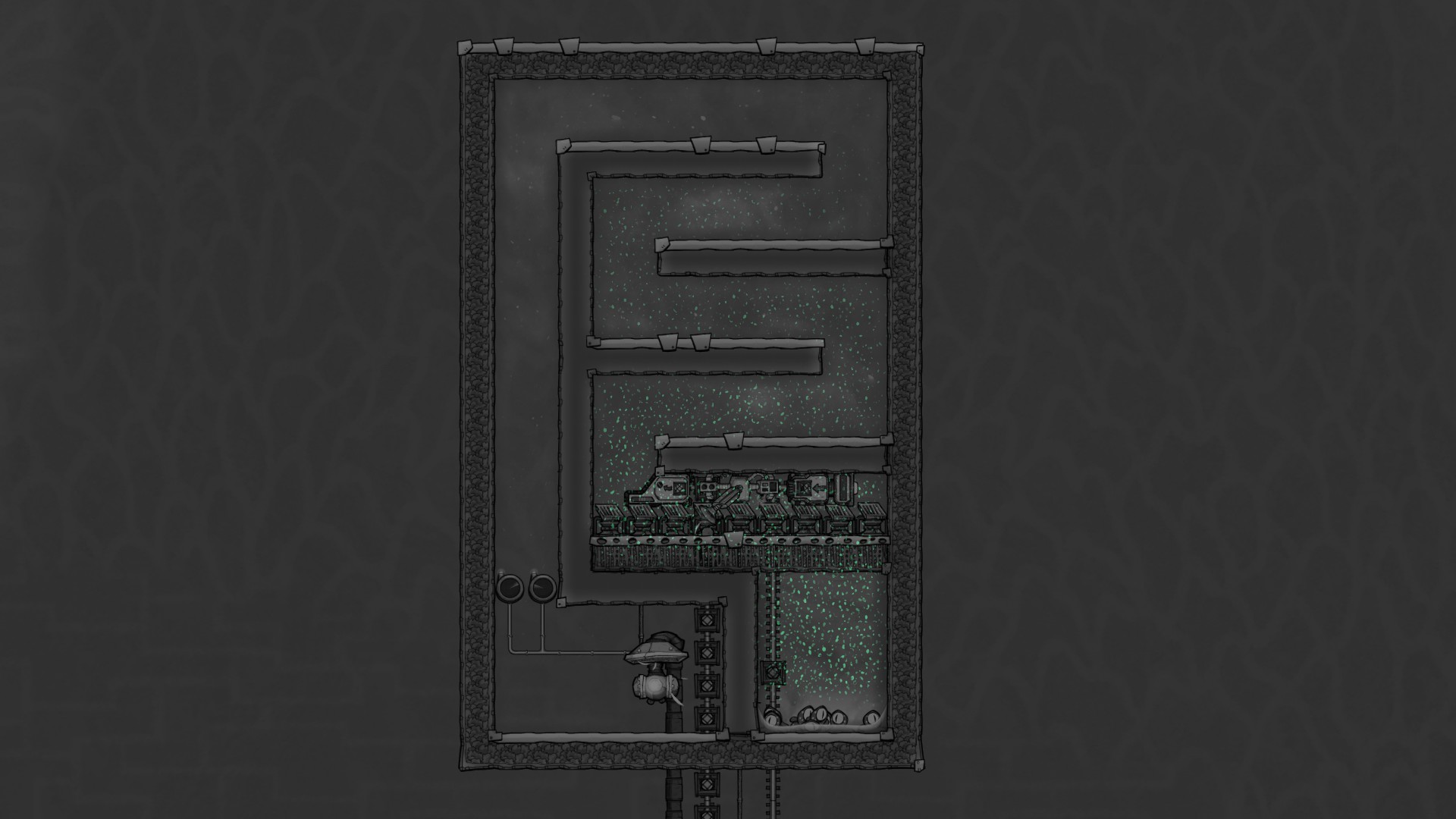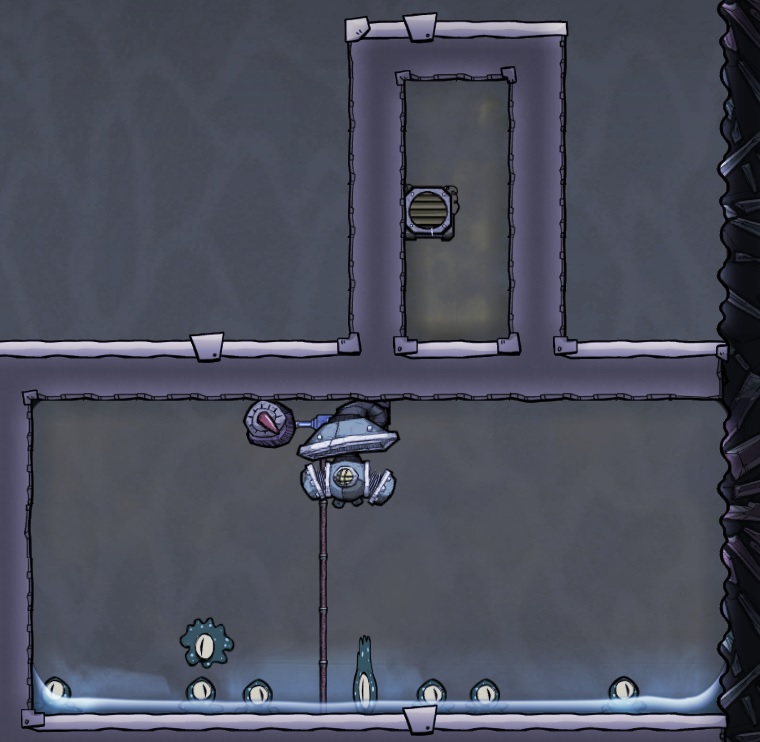 Atmo switch is set to pump above 500 g and I started the morb room with 500 g oxygen. The water tiles have 100 kg of water in them. I also tried 400 kg but then the morbs would move only very rarely and produce almost nothing.