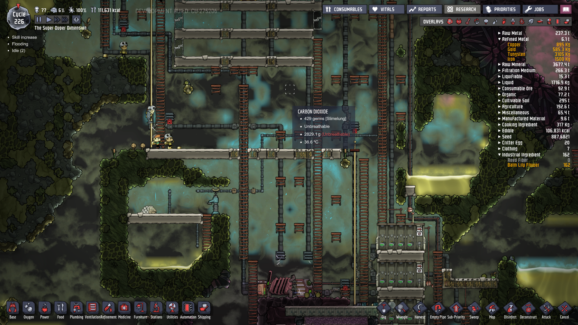 Carnis Posted July 1, 2018 Share Posted July 1, 2018 Smog was creeping on my 2 lowest living floors. Now patches of clean air are getting through the normal pressure vents.. ..88 slicksters ranch is making a dent. The -20 Celsius oilpool is a certified slickster killer, took a cycle but when bodytemp goes around <35 they turn to meat. Link to comment https://forums.kleientertainment.com/forums/topic/92965-broke-through-my-smog-today/ Share on other sites More sharing options...