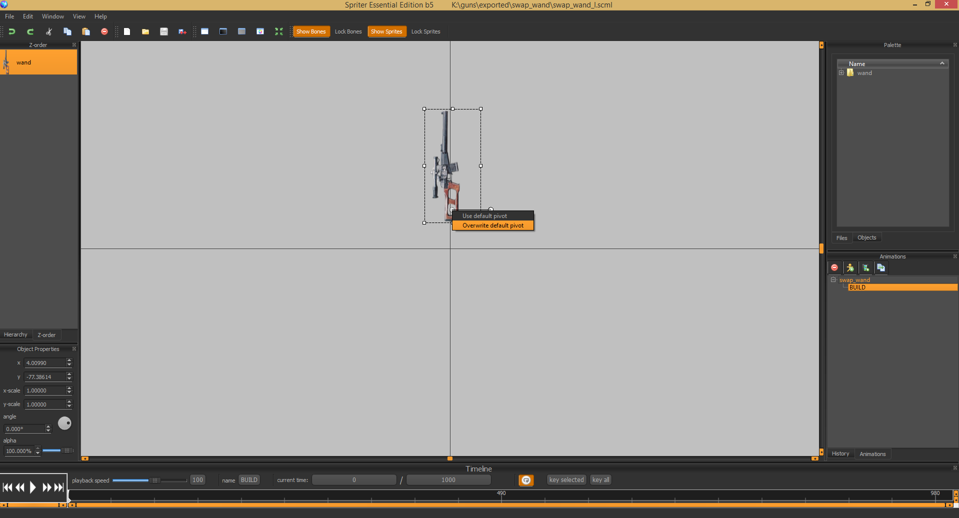 Kronas Posted July 24, 2018 Author Share Posted July 24, 2018 3 hours ago, K1NGT1GER609 said: Hint: theres a dot when you (left)click the image in the spriter file. That dot can be moved around and thats where the character's hand will grab the weapon, when you find the right spot right click on the dot and select overwrite default pivot and save the scml. And recompile it of course. THE HELL I NEVER NOTICED THAT this will fix tons of problems THANK YOU XD Link to comment https://forums.kleientertainment.com/forums/topic/93893-help-custom-item-sprite-went-wrong/#findComment-1067903 Share on other sites More sharing options...