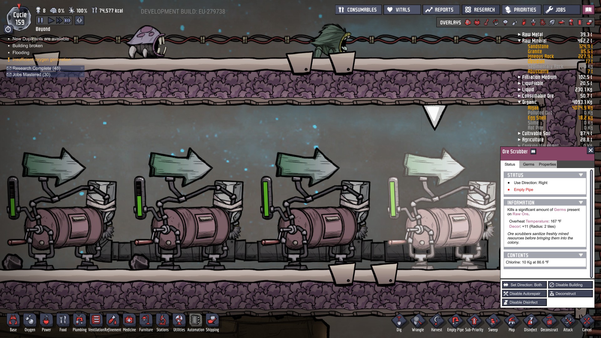 DaX1987 Posted July 29, 2018 Author Share Posted July 29, 2018 2 minutes ago, abud said: Yes It's already like that since first time I use it in ranch update, unless you mean long before that. I hope they change it in the future to check content instead of checking pipe. so the pipe can't be empty, even when the contents of the scrubber is full.. and does that mean that disconnecting gas lines from emptied chlorine pockets will "break" the ore scrubber? 5 minutes ago, blash365 said: The reserves of your ore scrubbers seem to be green. So they should be operational. I havent used them much myself, but if i remember correctly, they should also be operational with small amounts of chlorine. Could you provide another screenshot of the contents of one of them (on the lower part of the info screen)? Link to comment https://forums.kleientertainment.com/forums/topic/94115-ore-scrubber-not-being-used/#findComment-1069786 Share on other sites More sharing options...